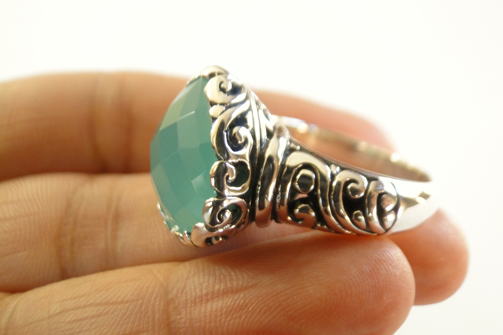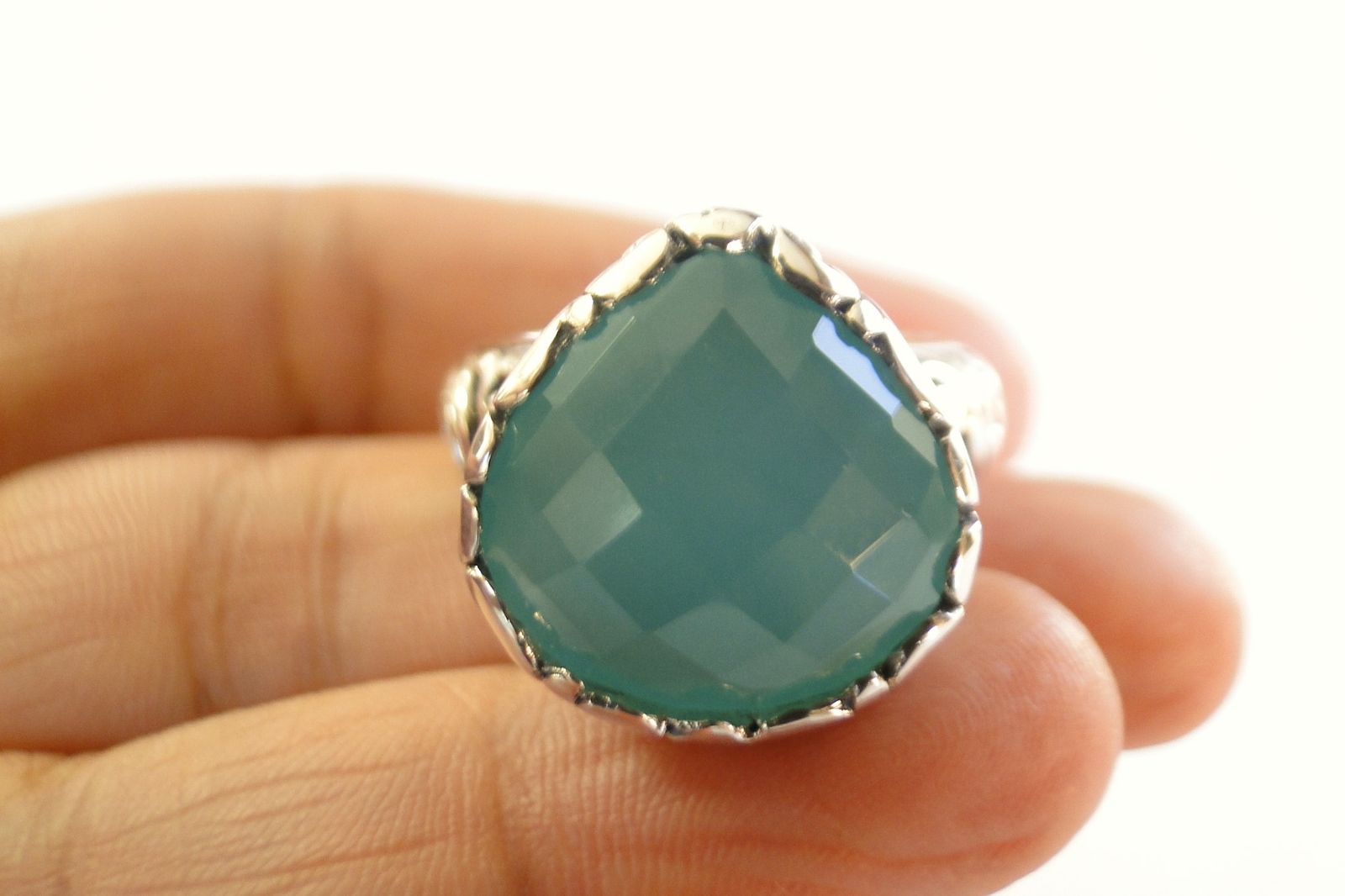 как выглядит Pear Shaped Green Chalcedony Solitaire Sterling Silver Ring 6 7 8 9 фото