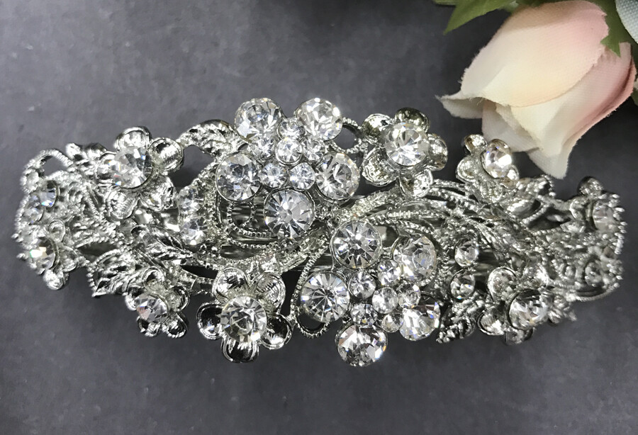 Silver tone with clear rhinestone crystal hair barrettes metal hair clip ha3090