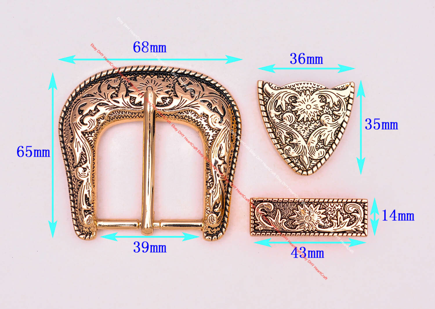 как выглядит Heavy Gold Western Cowboy Belt Buckle 3 Piece Set Floral Carved Unisex 1-1/2" фото