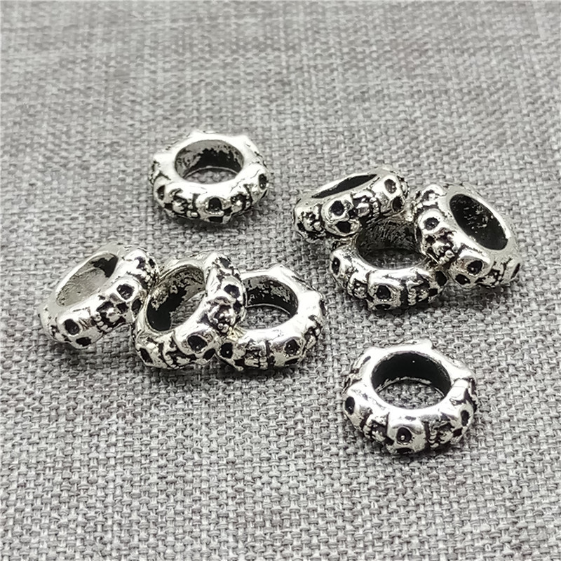 2 Sterling Silver 6-sided Skull Beads for European Bracelet