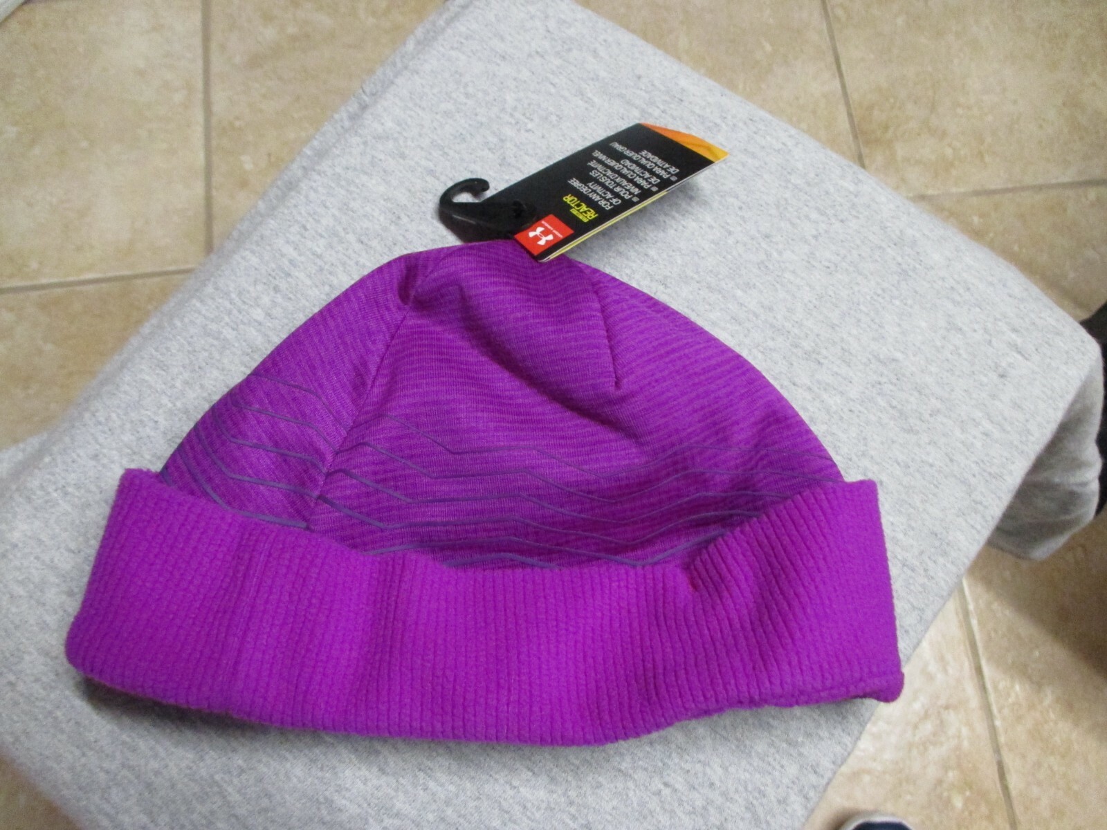 UNDER ARMOUR YOUTH/GIRLS WINTER BEANIE HAT NWT 25 PURPLE W/UA PATCH CUFF SOFT