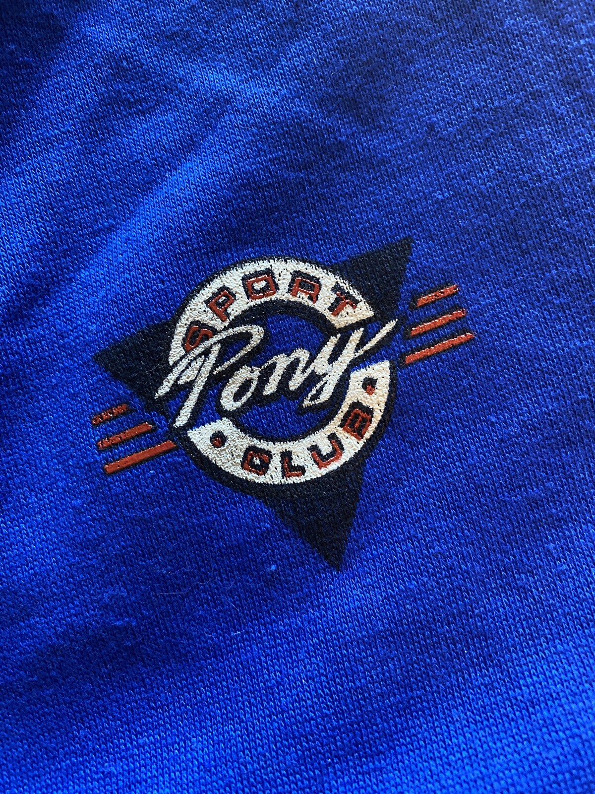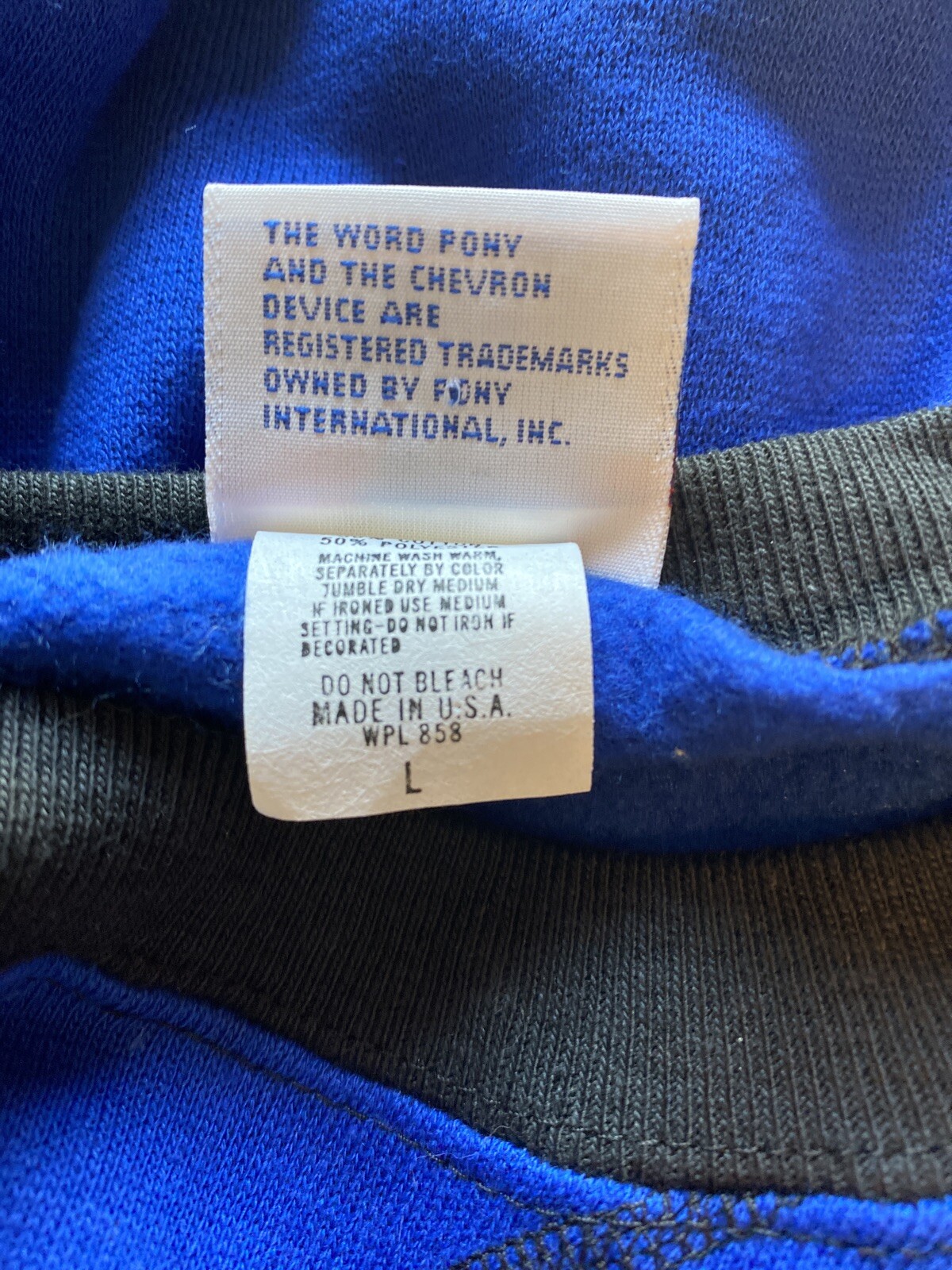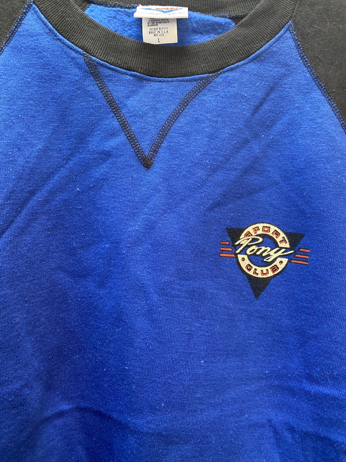 Vintage PONY Sport Club Sweatshirt Mens Large Blue With Black Sleeves And Trim
