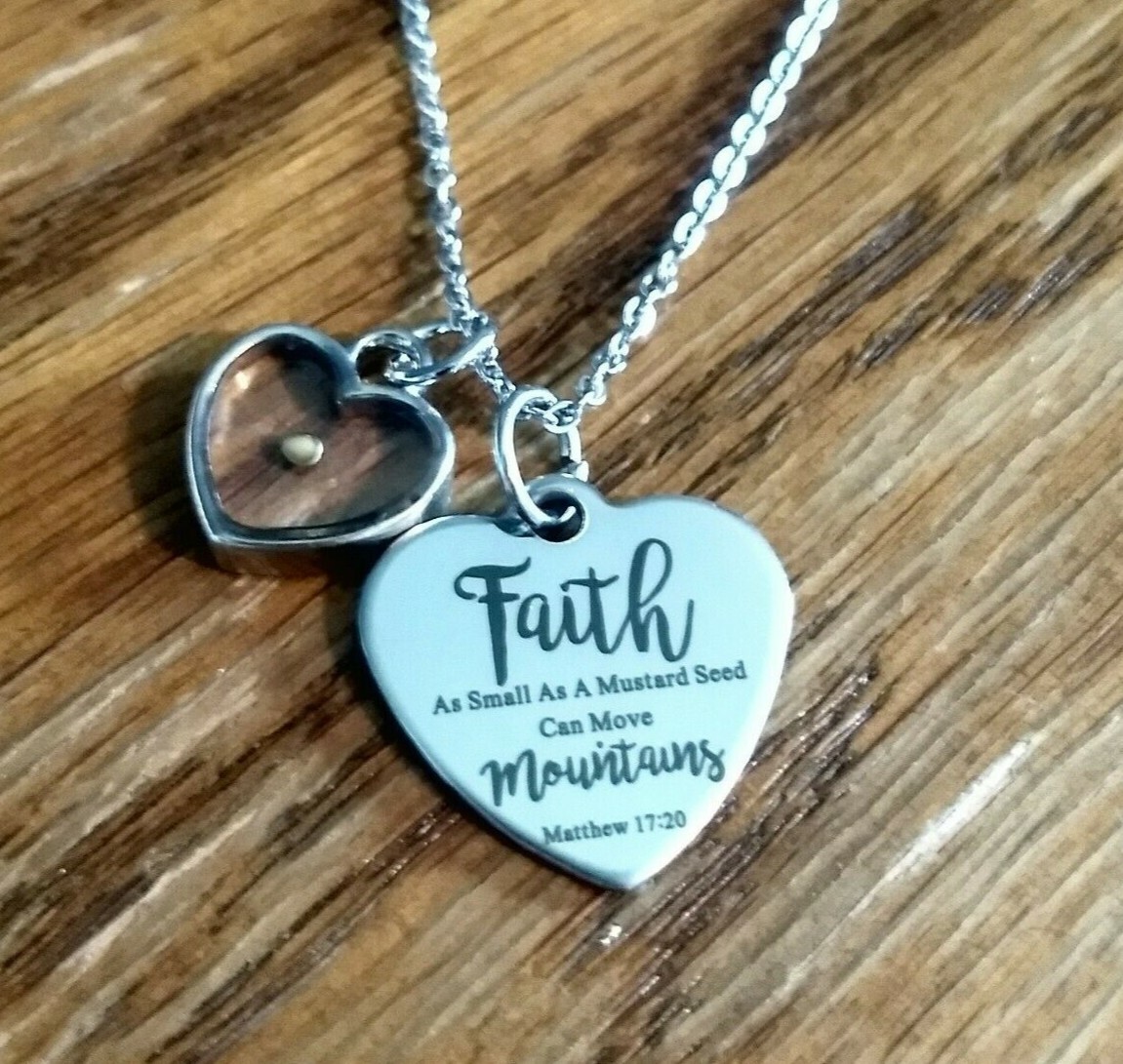 как выглядит Real Mustard Seed Necklace With Heart Faith Can Move Mountains Jewelry For Women фото