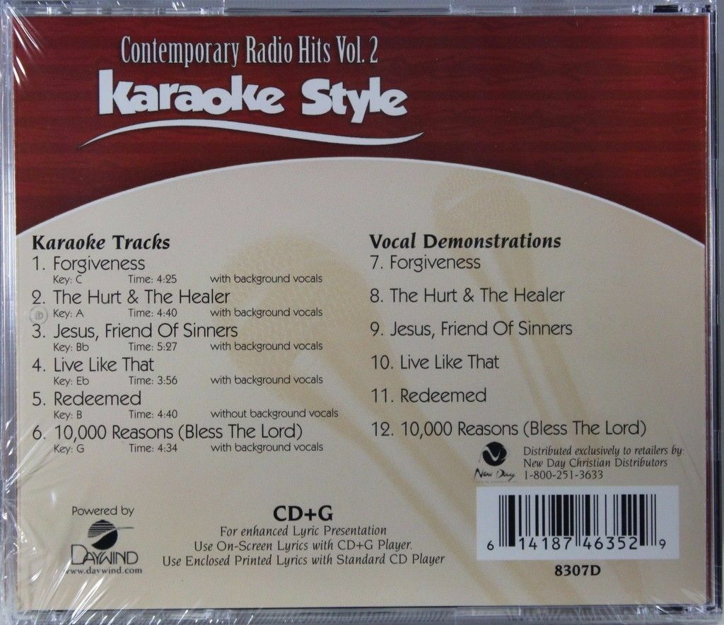 Contemporary Radio Hits Volume 2 Christian Karaoke Style NEW CDG Daywind 6 Songs