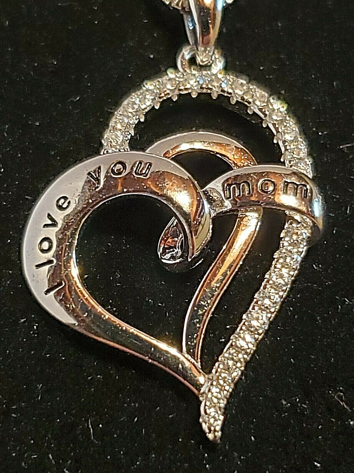 Mother Daughter Heart Shaped Silver with Crystals Necklace Fashion Mothers Day