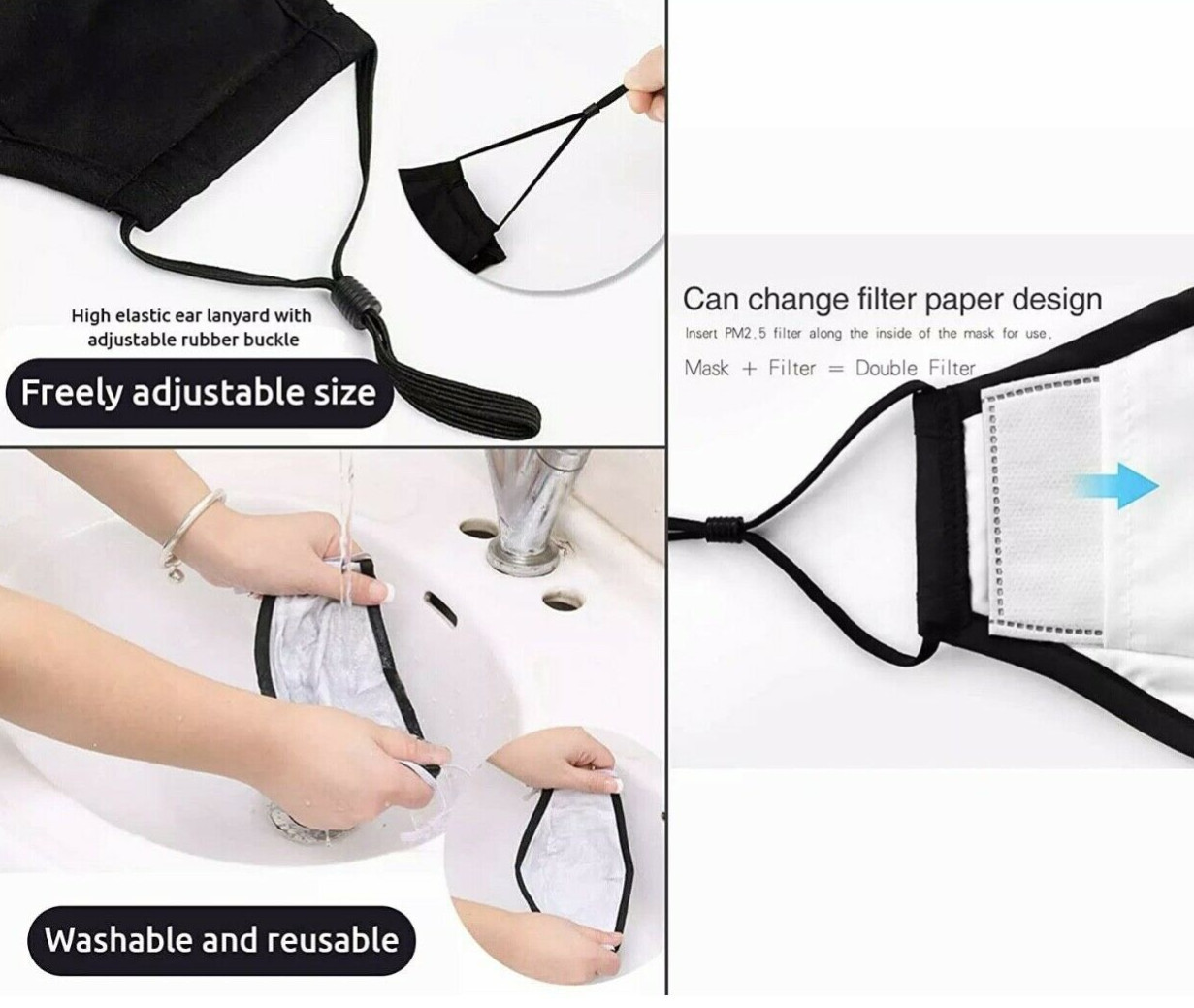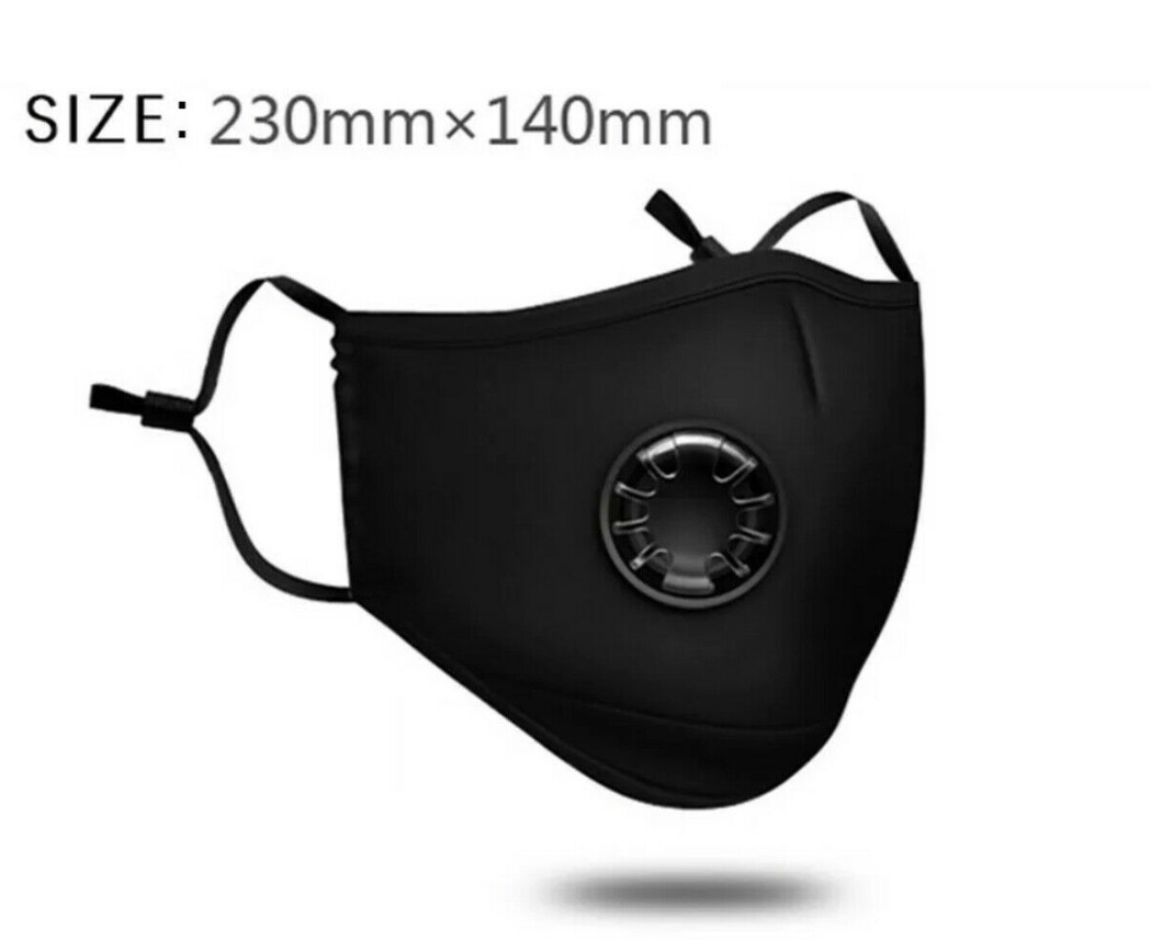 как выглядит 2x Reusable Washable Cloth Face Mask w/ Air Port PM2.5 Carbon Filters Black фото
