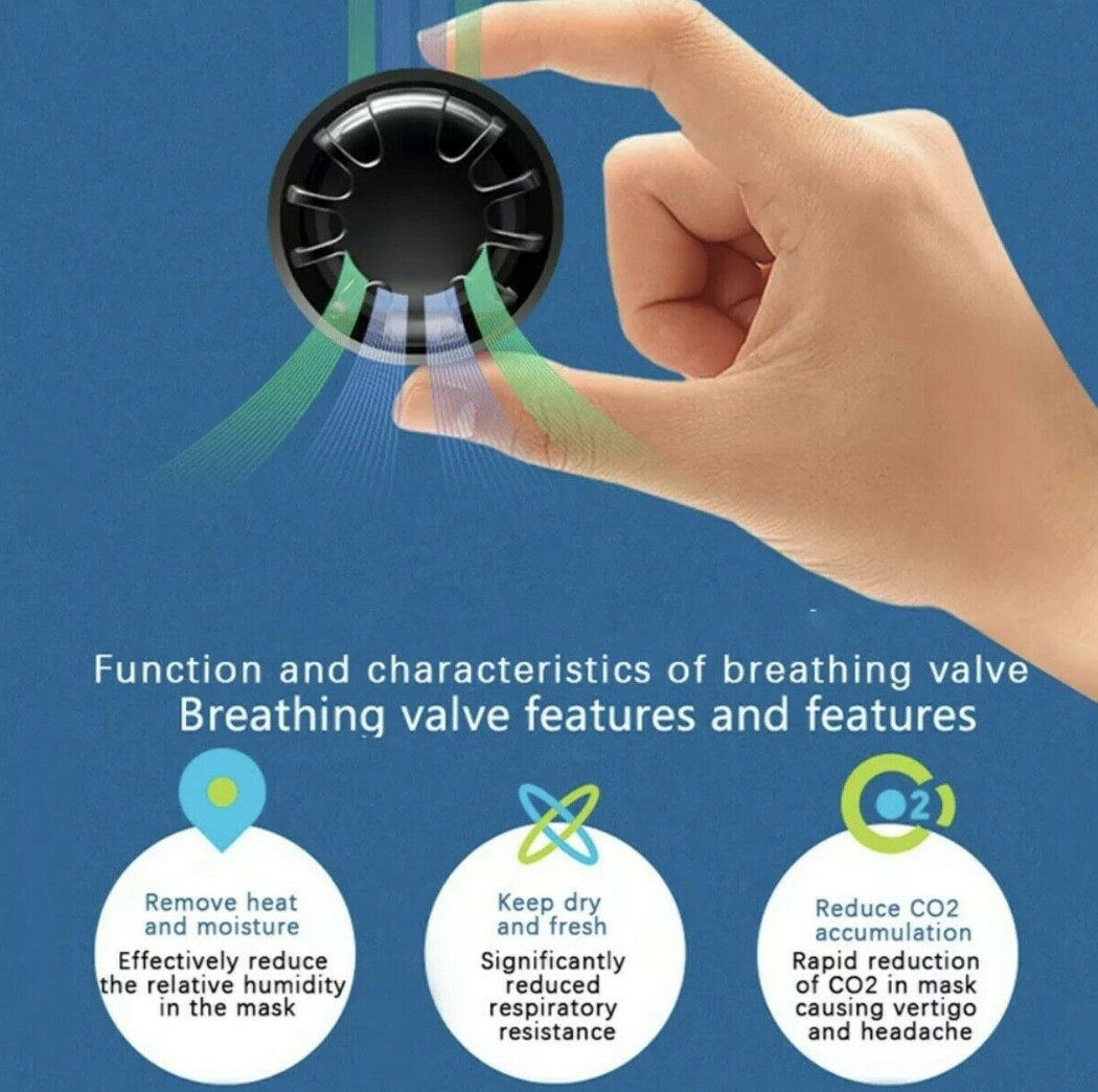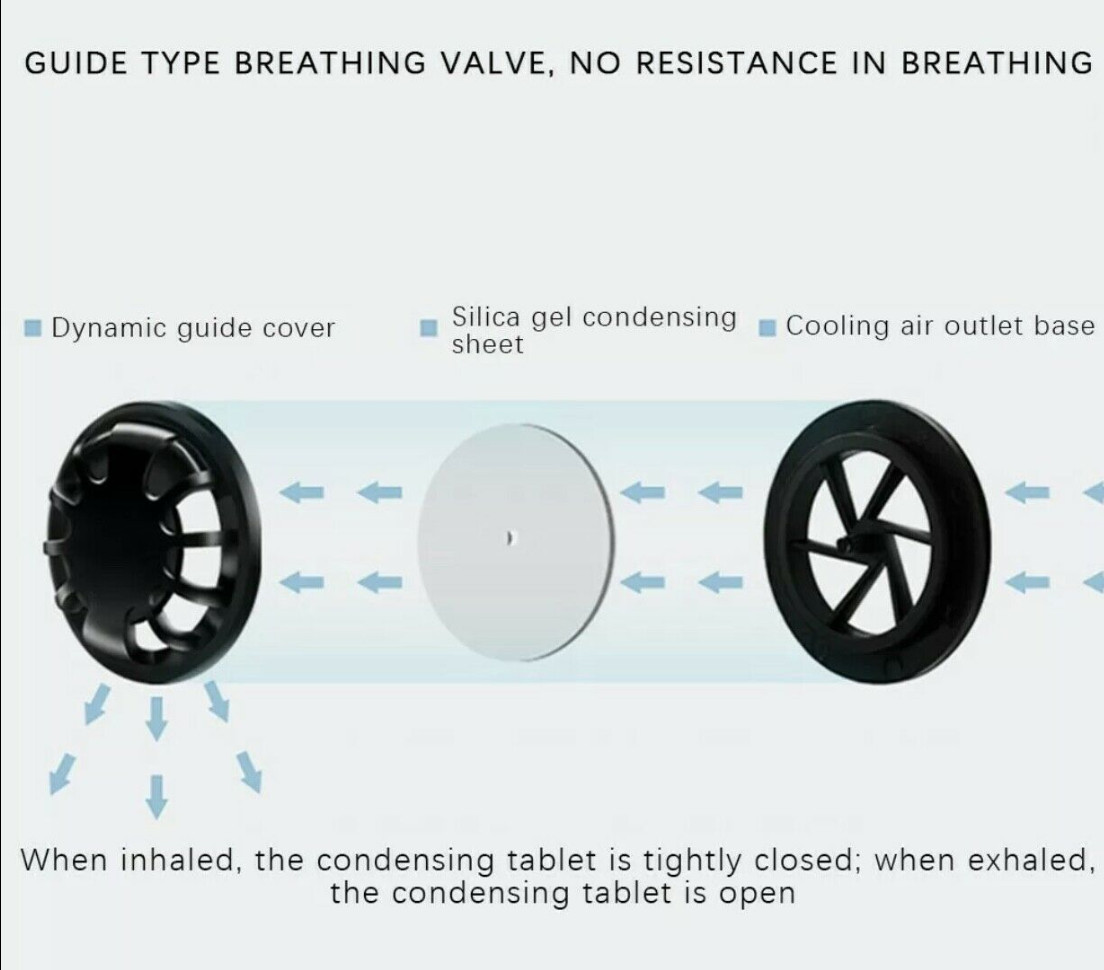 Особенности: Breathing Valve, PM2.5 Filter, Custom Fit Adjustment, Reusable, Washable, Cooling