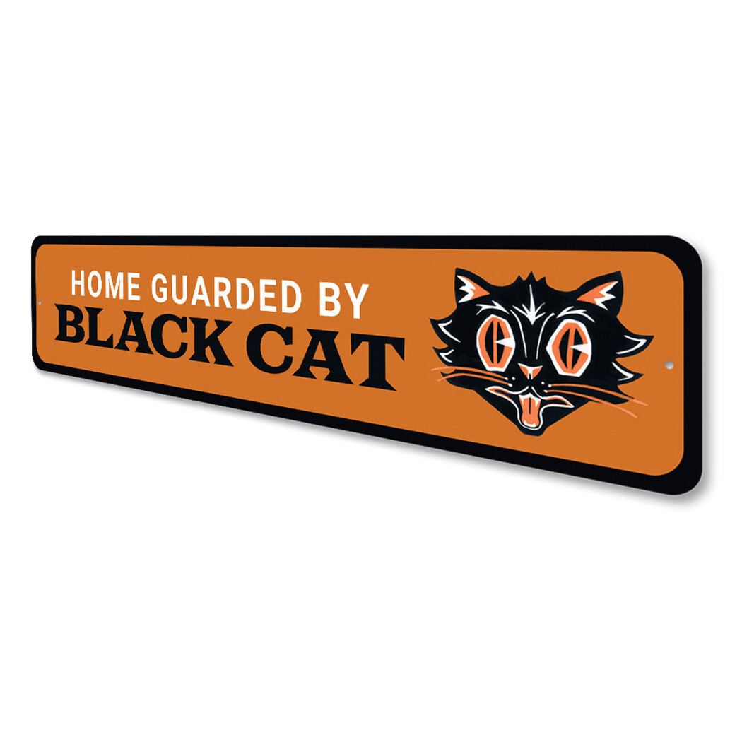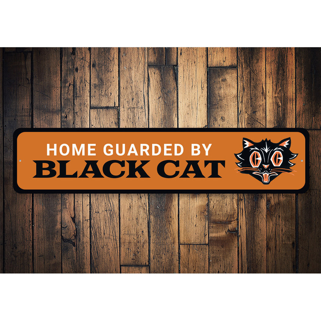 Home Guarded by Black Cat, Black Cat Halloween Decorative Sign, Cat Metal Sign