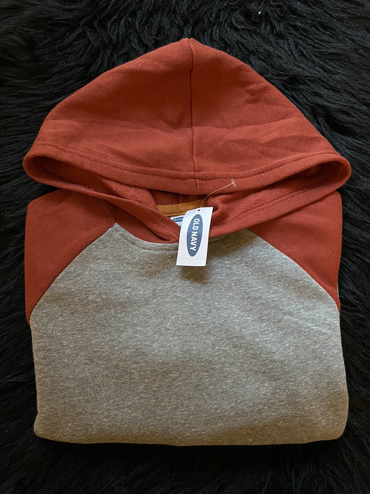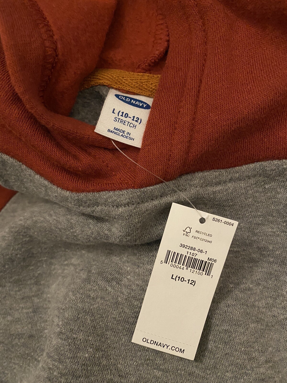 OLD NAVY BOY PULLOVER HOODIE GRAY/ DARK ORANGE SIZE LARGE 10-12 . NEW WITH TAG.