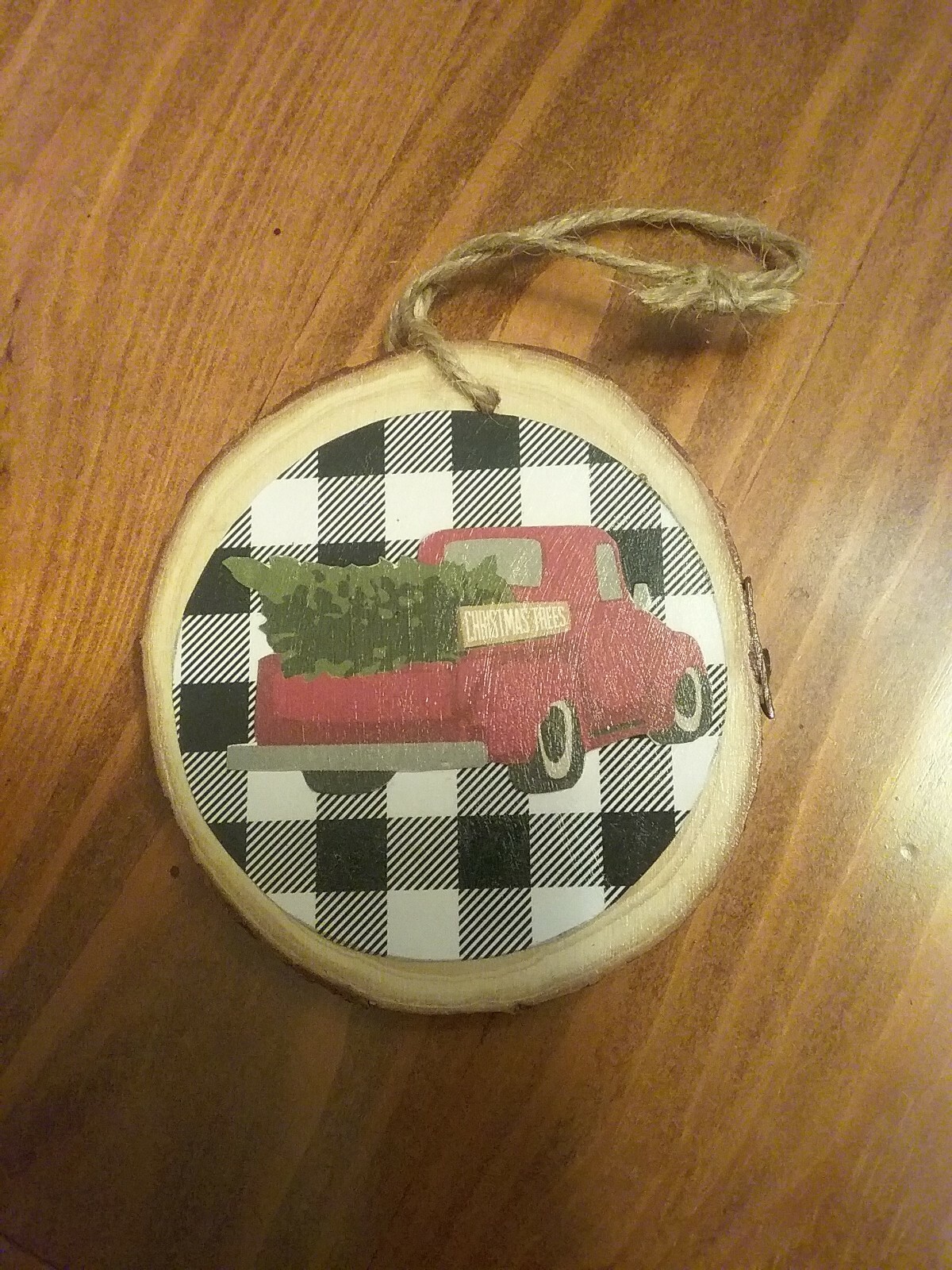как выглядит "SNOWMAN" Wood Slice ornament - handpainted - Made in USA. i фото
