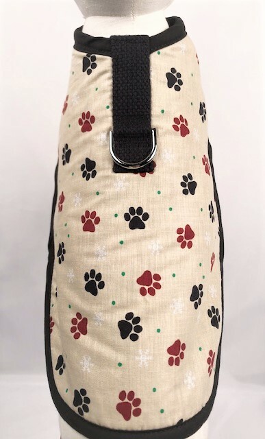 Cream Fleece Lined Paw Prints Dog Harness Clothes Coat