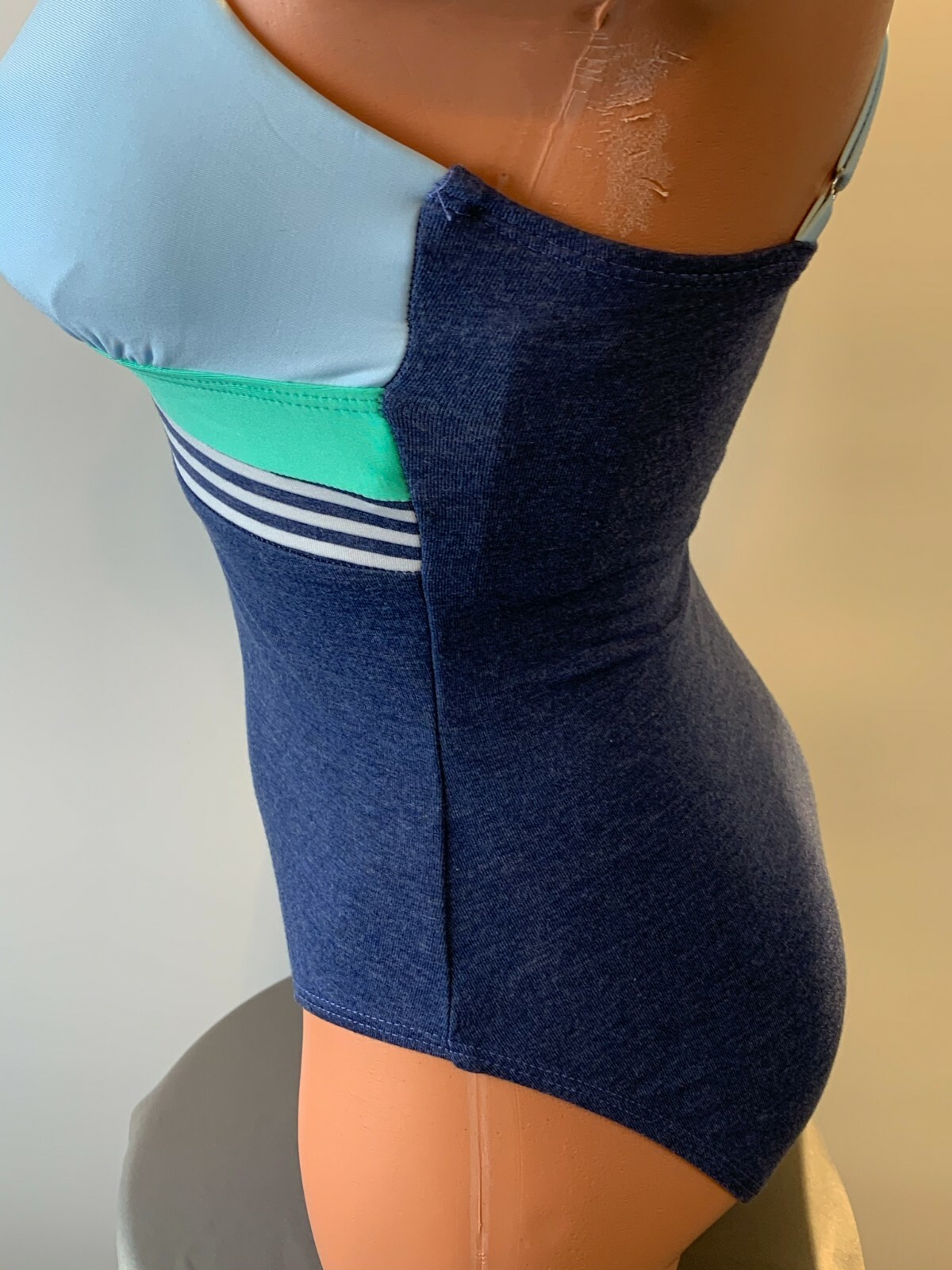 Splendid Brand The Blues Too One Piece Swimsuit Crossback Straps Sz XS NWT 108