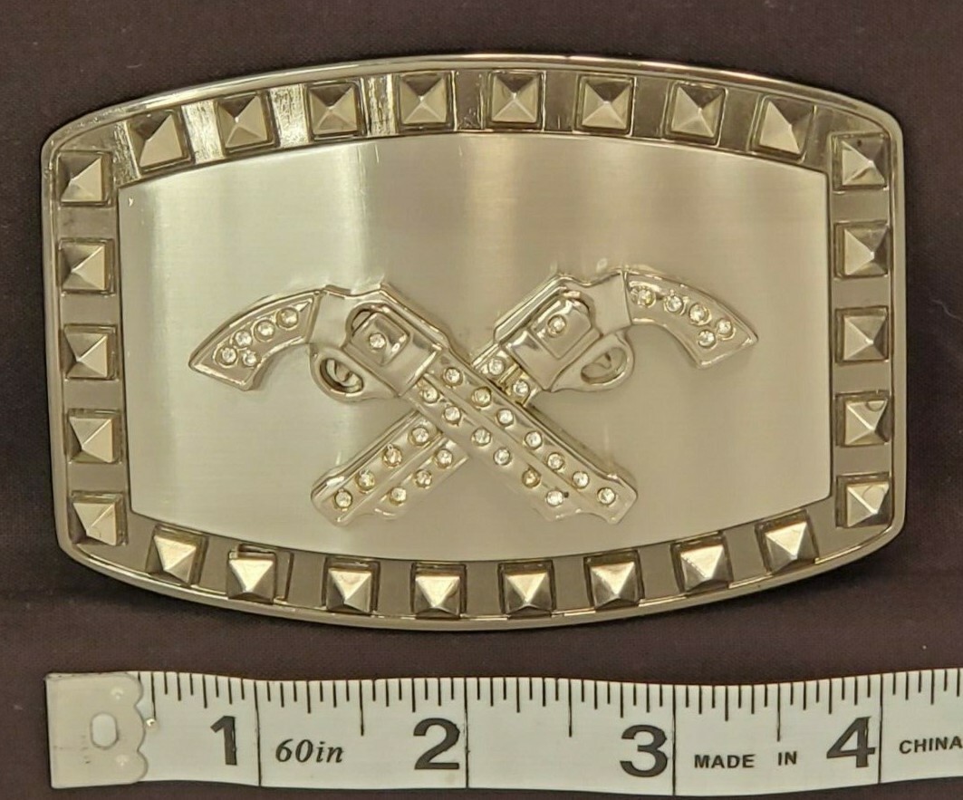 STUDDED SILVER TONE TWIN PISTOLS BELT BUCKLE