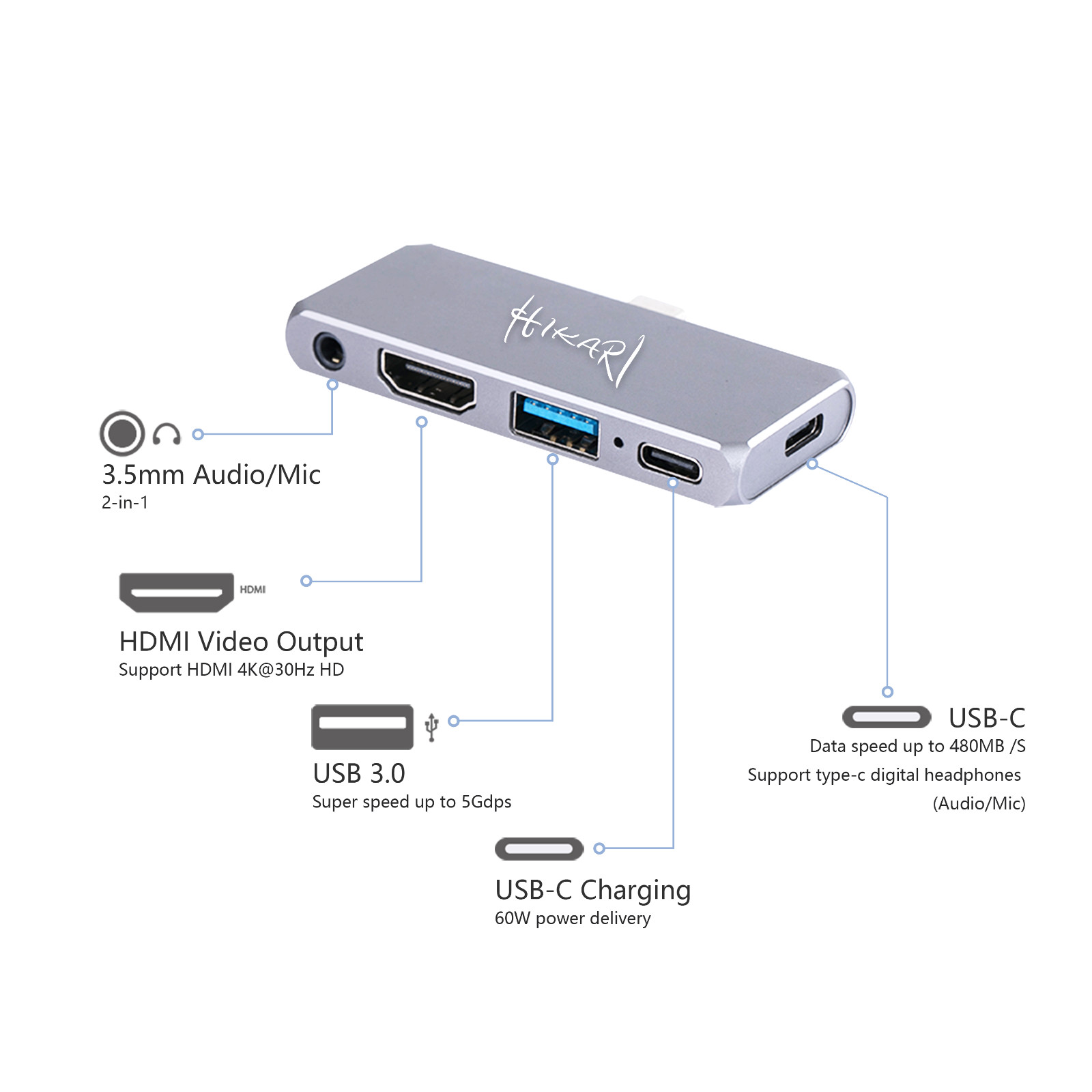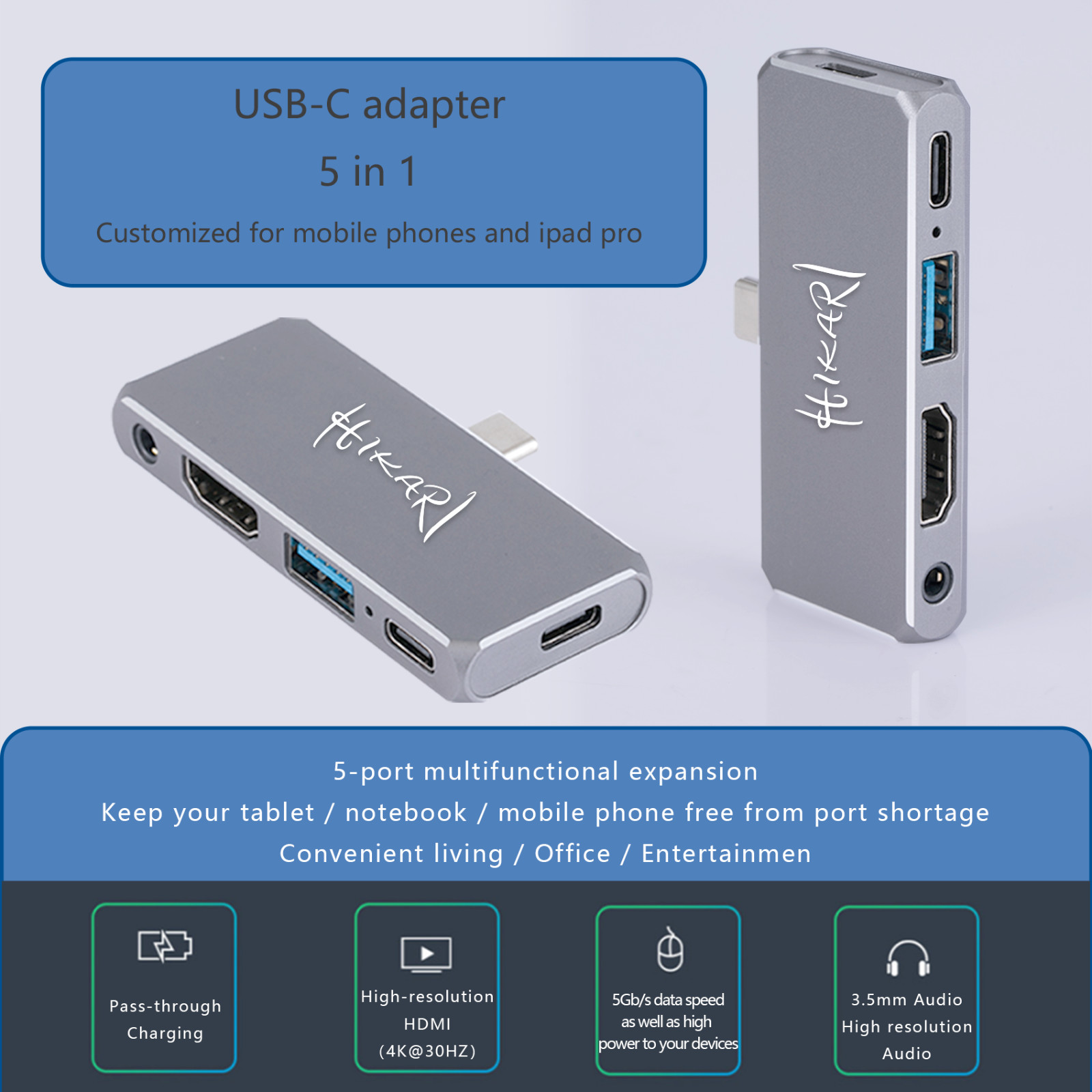 USB Type-C HUB HIKARI 5 in 1 Adapter for New iPad Pro/MacBook Pro/Android Device