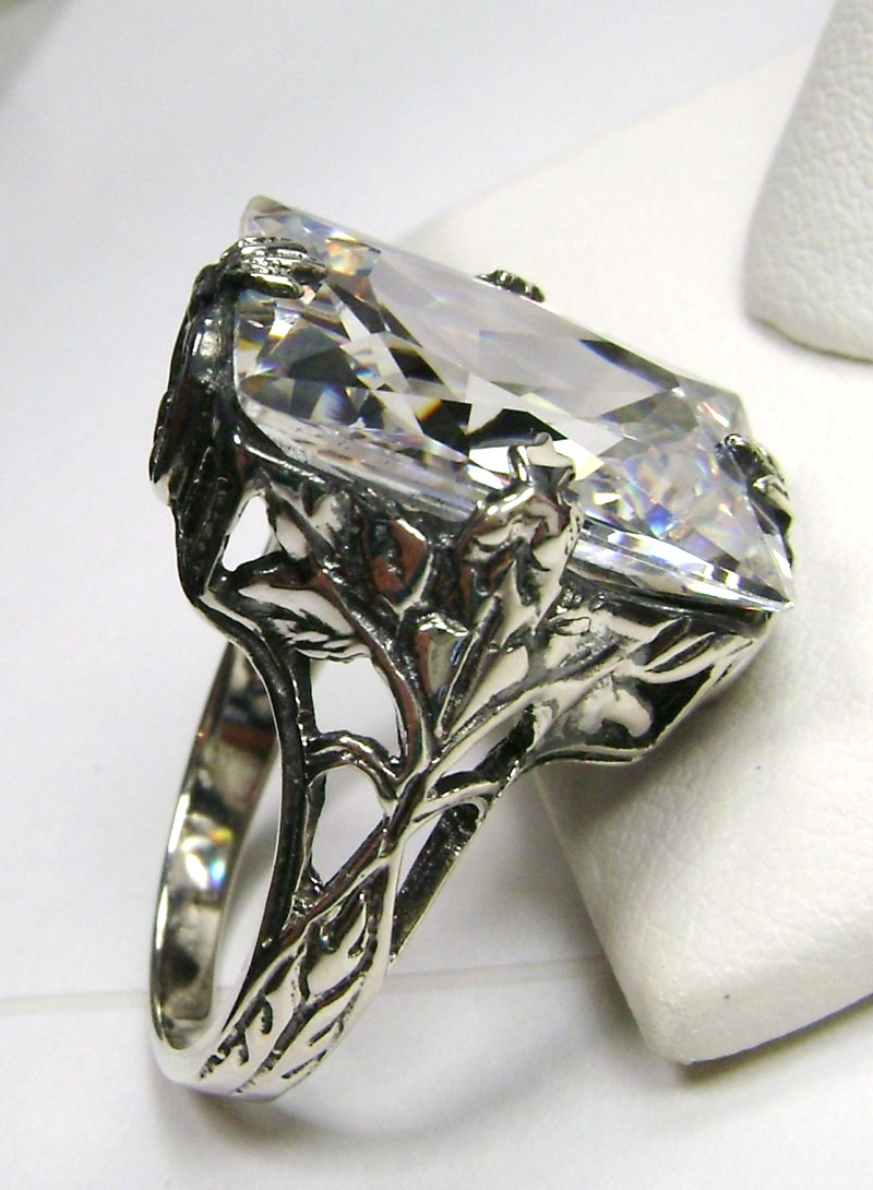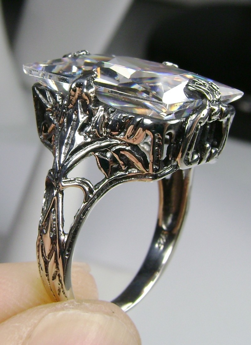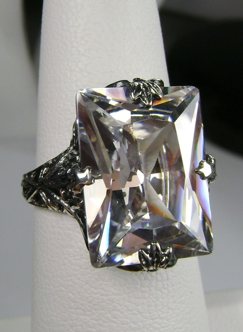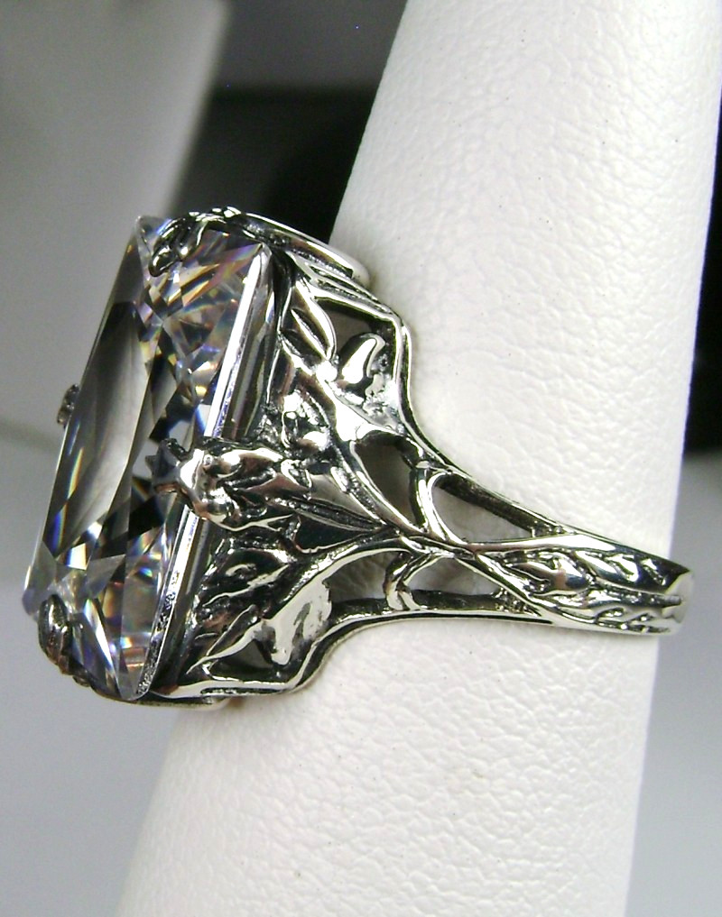 как выглядит Art Deco Ring 10ct White CZ 925 Sterling Silver 1930s Repro Made To Order D15 фото