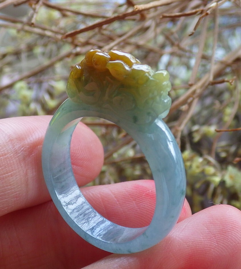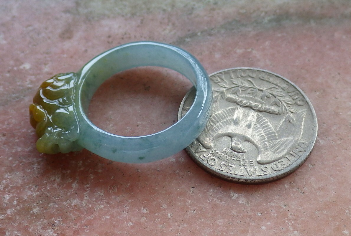 Certified Green Natural A JADE Jadeite Dragon Pi Xiu RING USA. 9.25 523823 TN