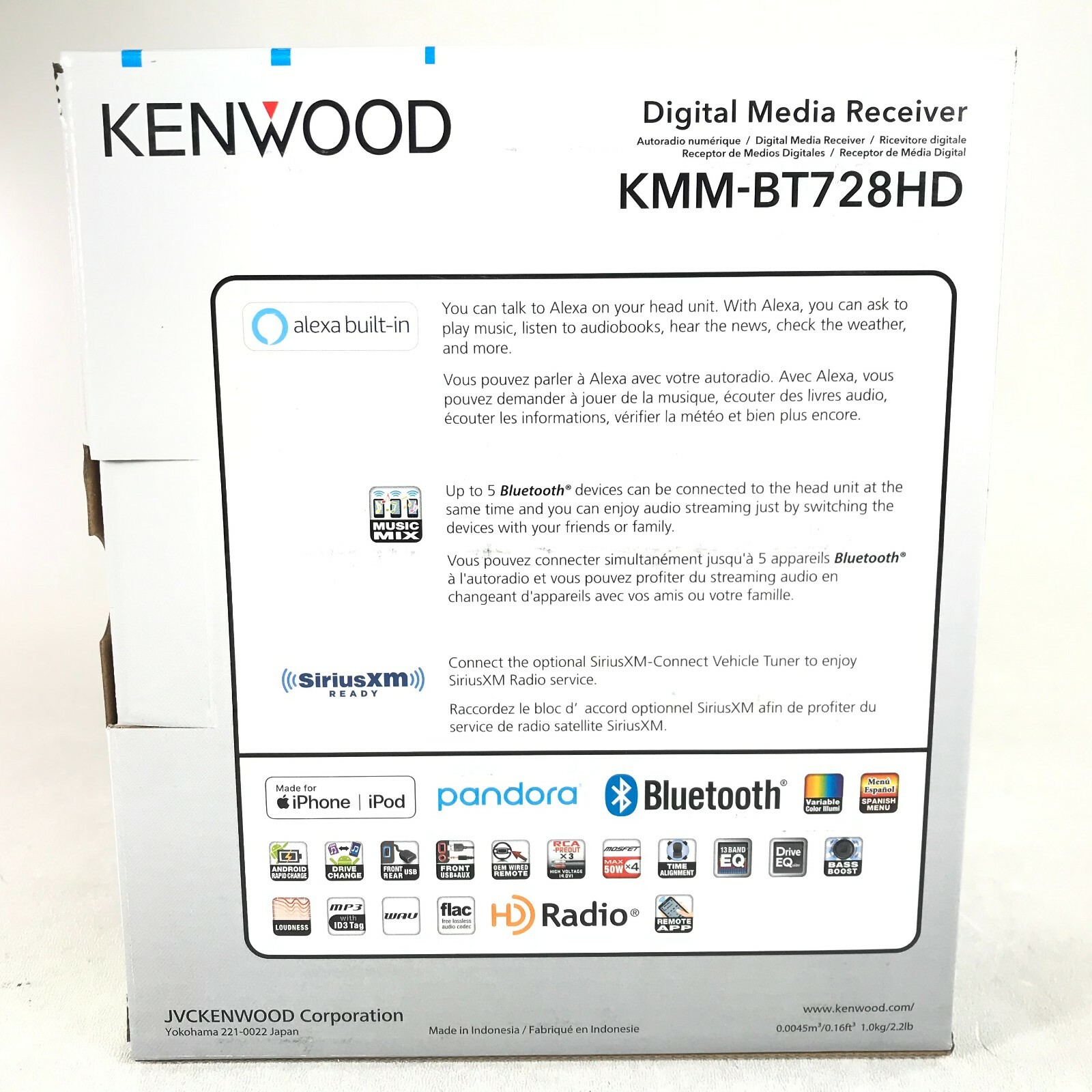 Особенности: digital media receiver, AM FM built-in HD Radio, plays MP3, WAV, AAC, WMA, and high-resolution FLAC, Android control through Bluetooth, iPhone USB, iAP2 support for Apple Music, Pandora, Spotify, front and rear USB inputs, front AUX input, 6-channel preamp outputs (4-volt front, rear, sub), built-in MOSFET amplifier (22w RMS/50 peak x 4 Ch), variable-color illumination, Sirius XM Ready, Auxiliary Input, Bluetooth Ready, Detachable Face, Equalizer, HD Radio Ready, Internet Radio Ready, Satellite Radio Ready