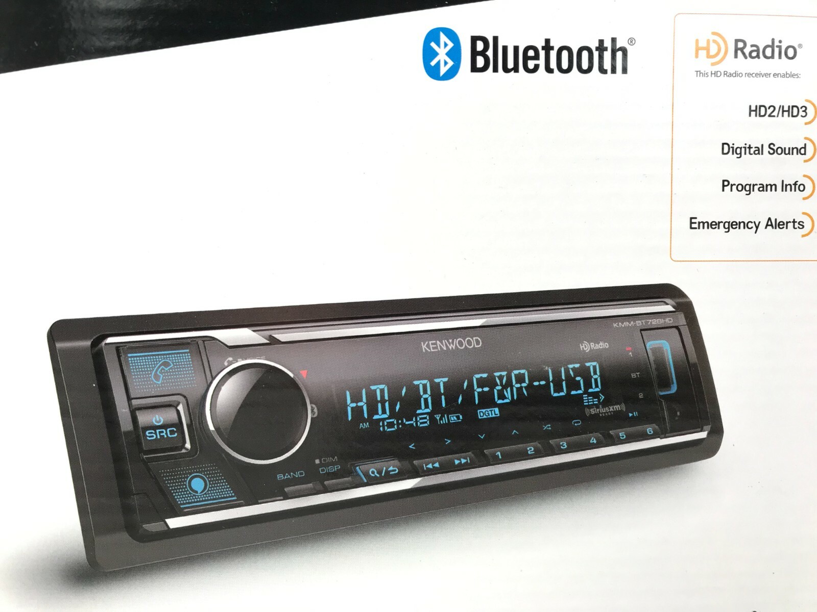 Kenwood KMM-BT728HD Bluetooth HD Radio Media Android iPhone Pandora USB Aux 6-Ch