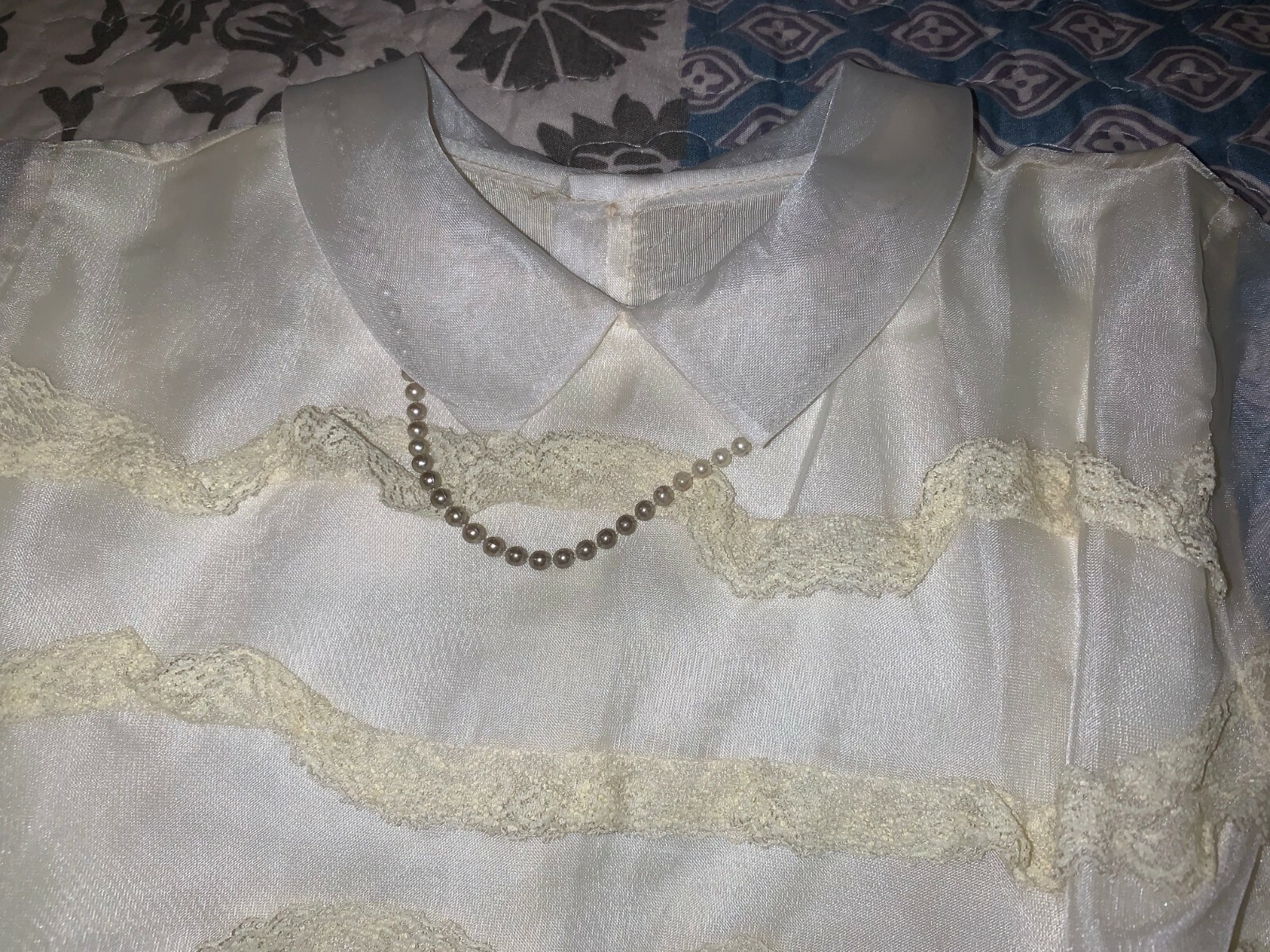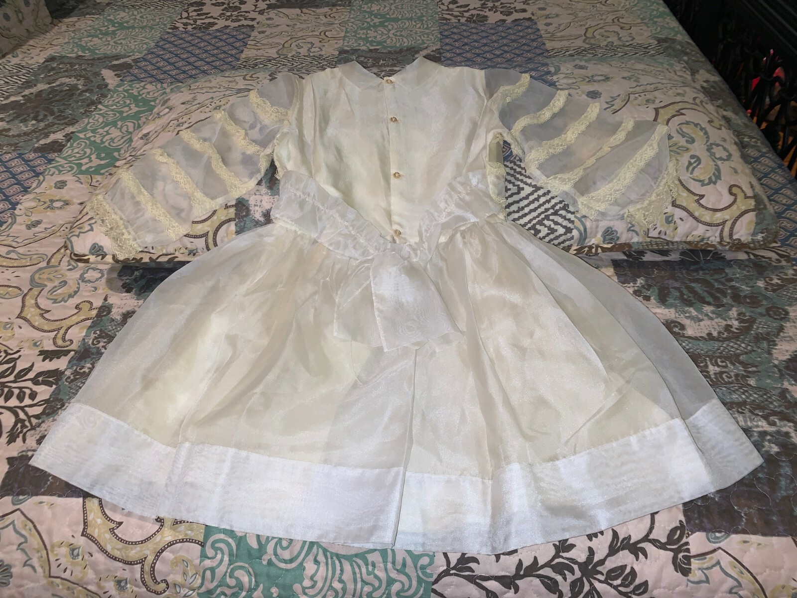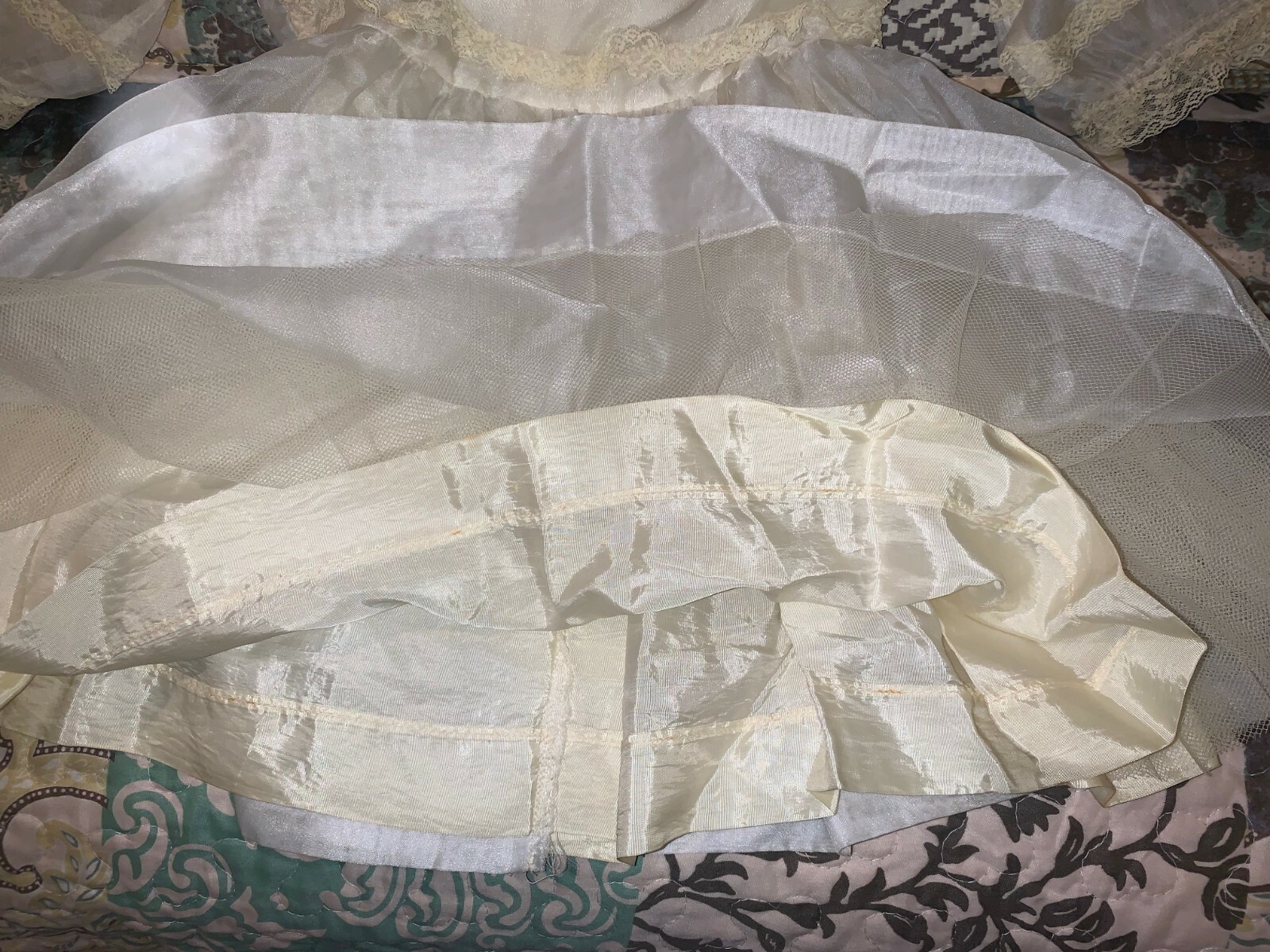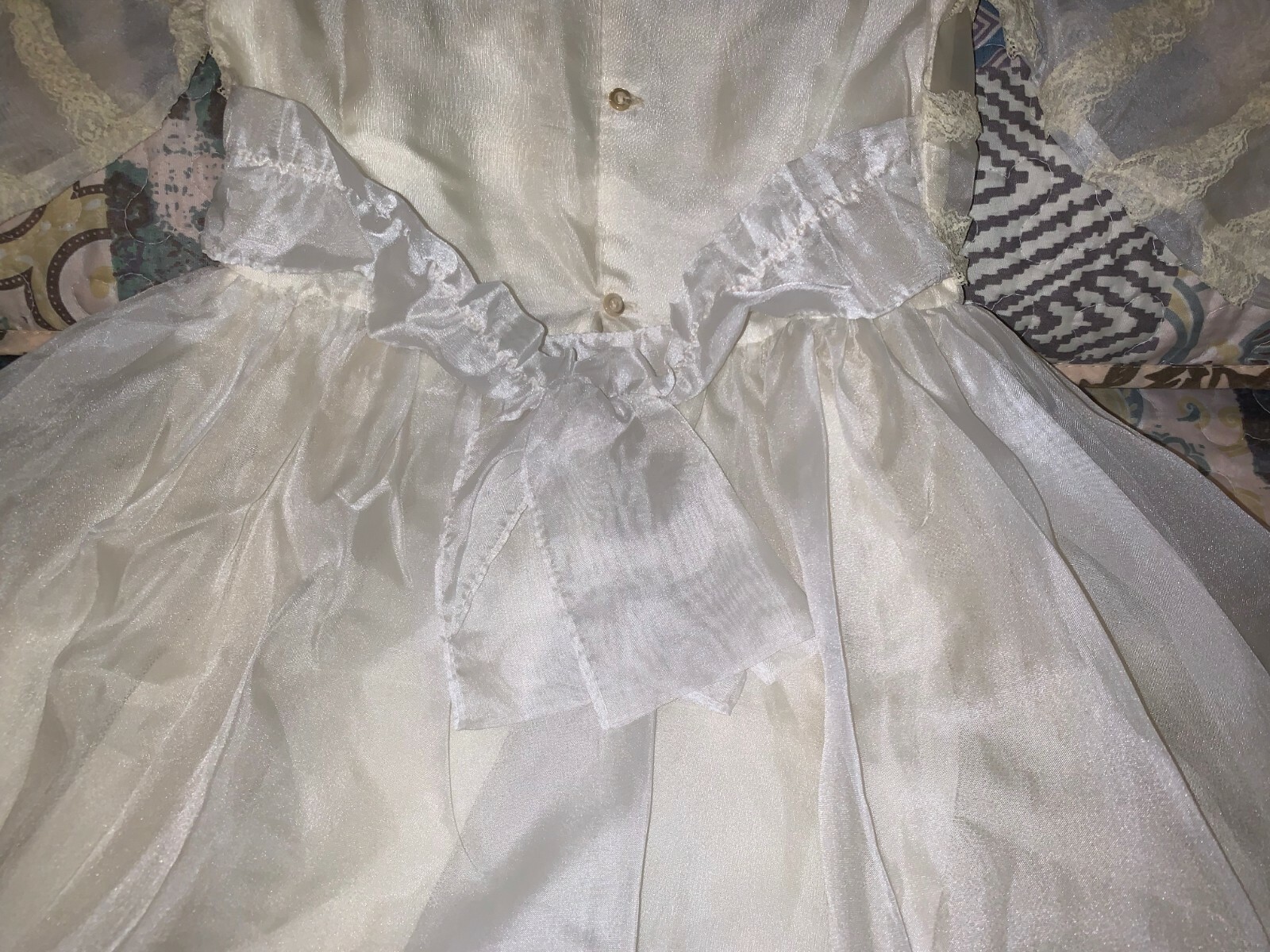 как выглядит True VTG Girls Off White Sheer Party Dress Pearls Lace Nylon Full Circle RARE фото