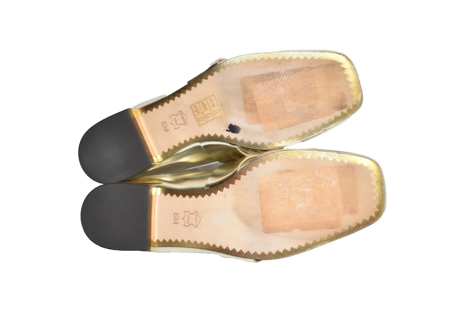 как выглядит 400 TORY BURCH Sidney mules LEATHER SLIDE SPARK GOLD SQUARE 6 SE36 фото