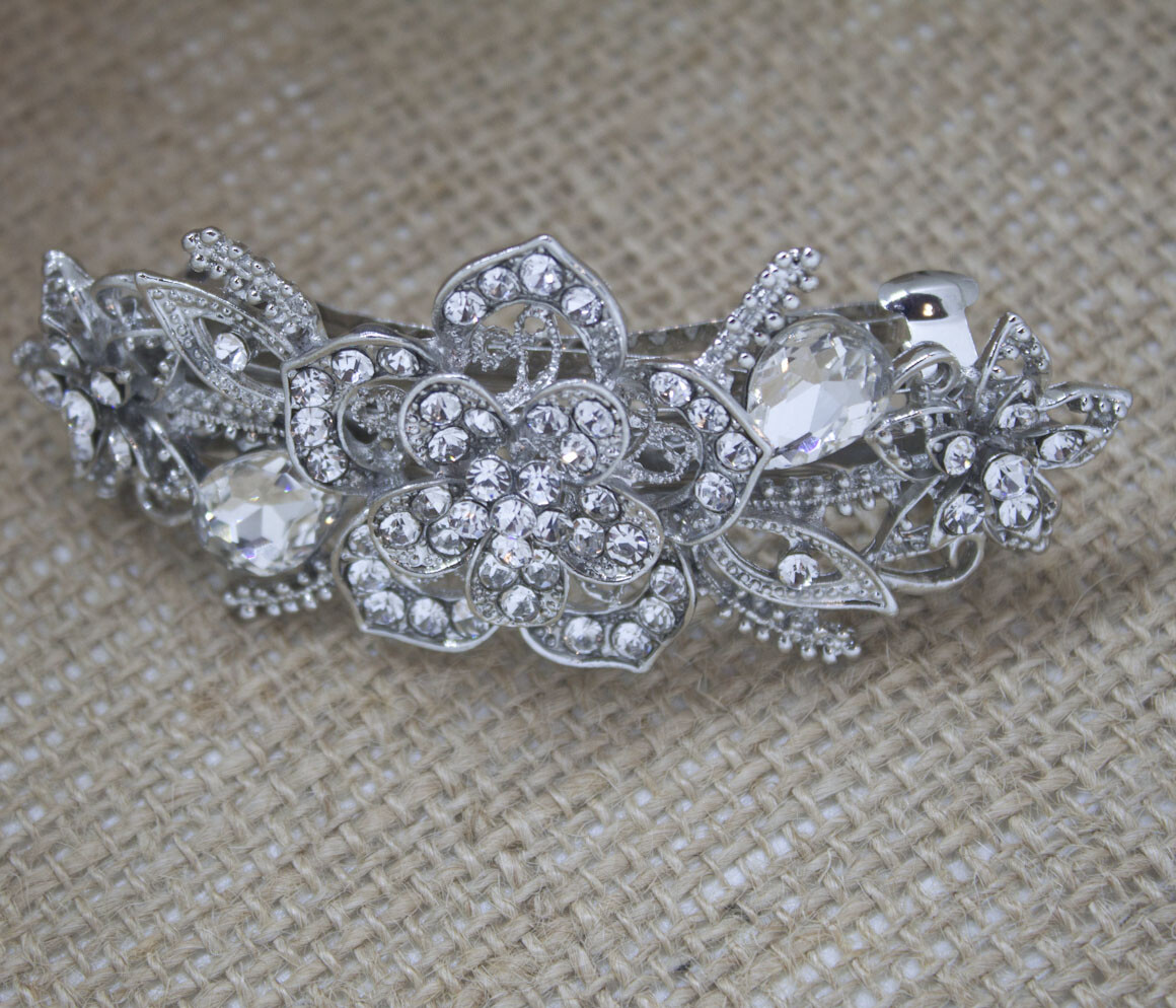как выглядит Silver tone with Clear rhinestone crystal hair barrettes metal hair clip ha4975 фото