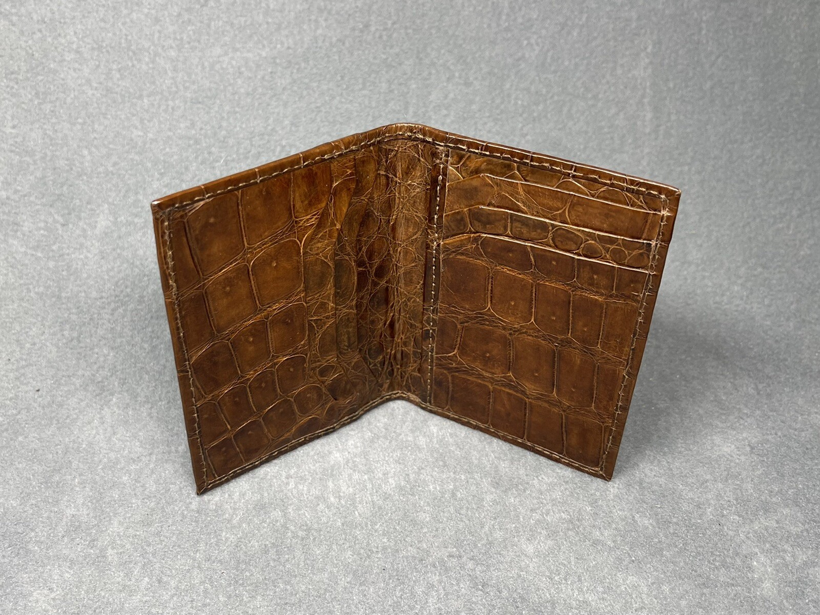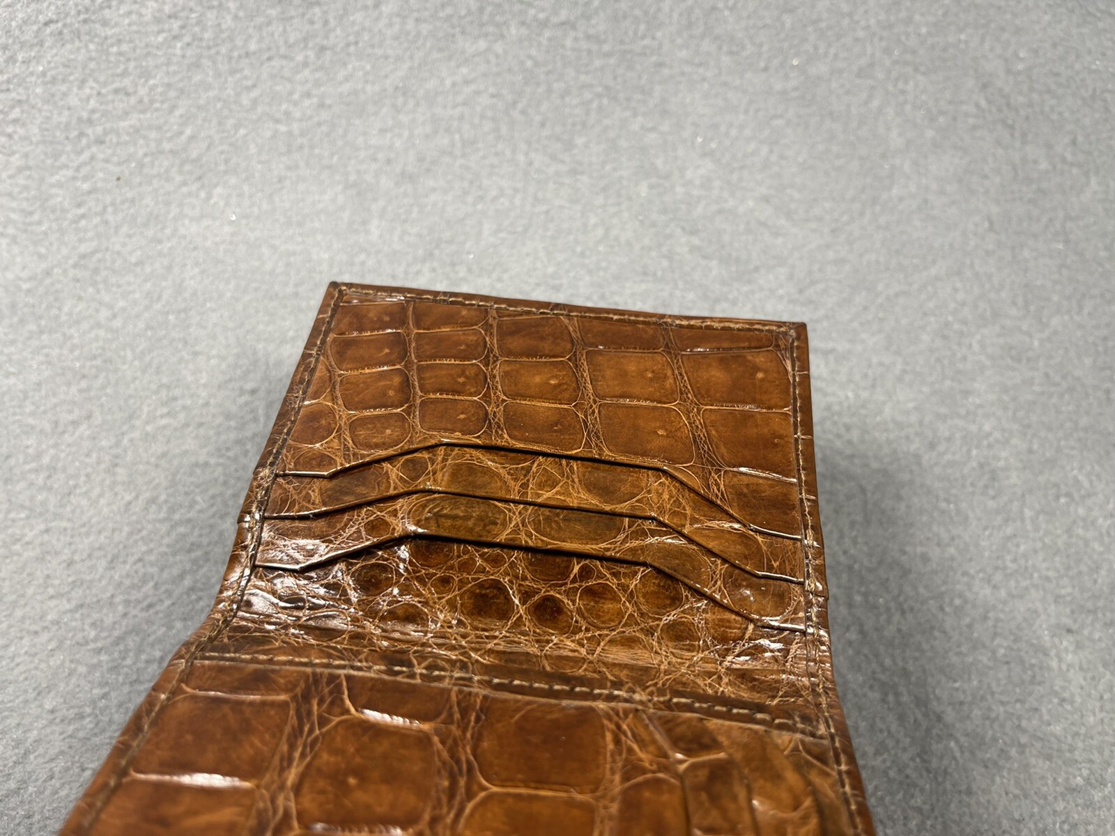 New Handmade Genuine Dark Cognac Alligator/Crocodile Compact Card Holder Wallet