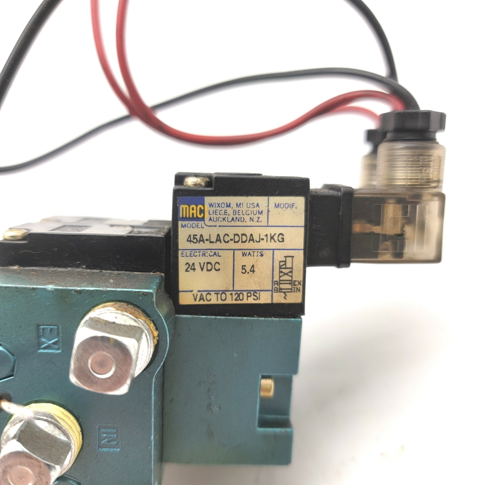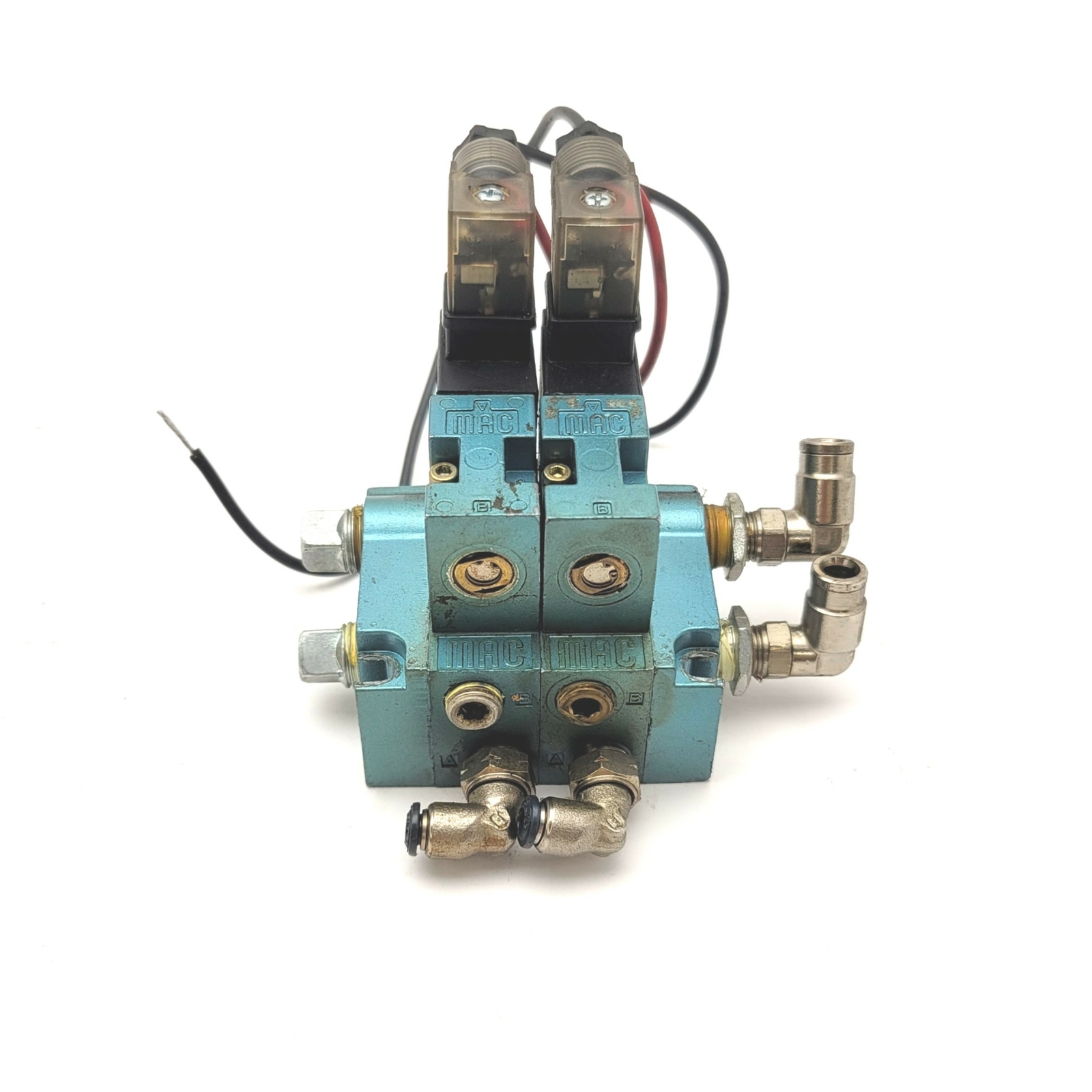 • Lot Of 2 MAC 45A-LAC-DDAJ-1KG Solenoid Valves On Manifold 24VDC, 1/8"NPTF Base