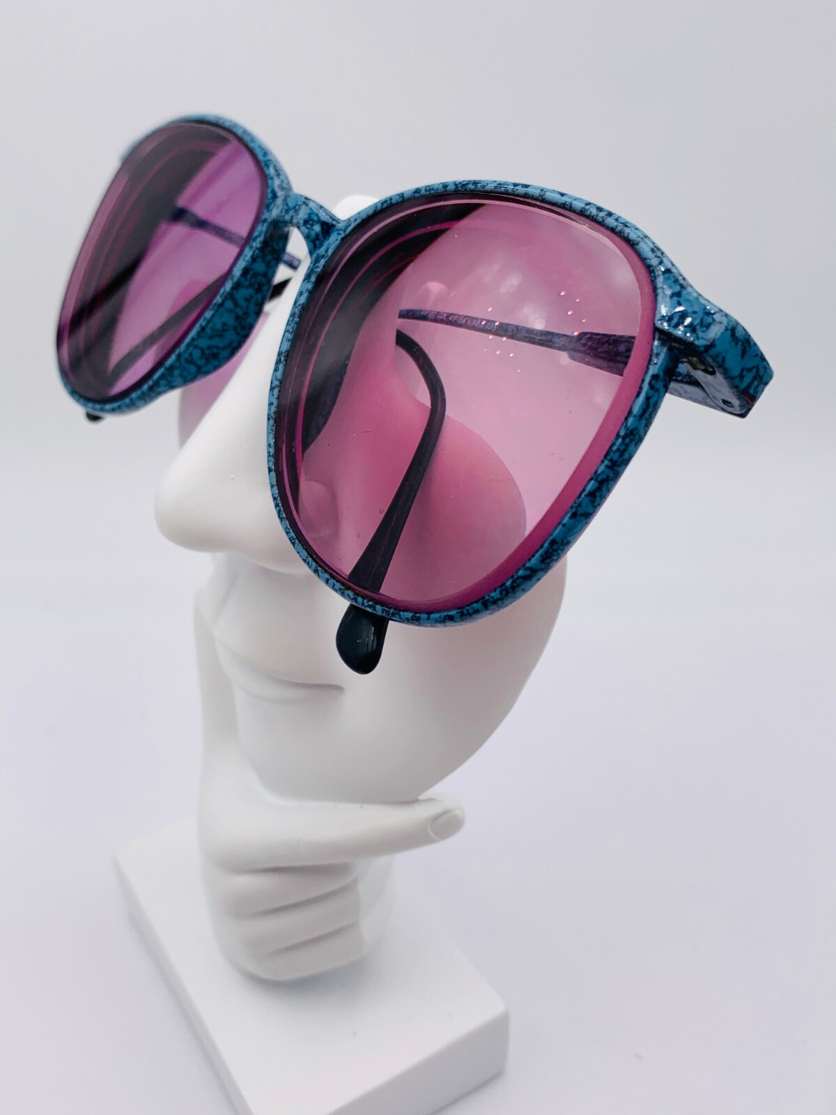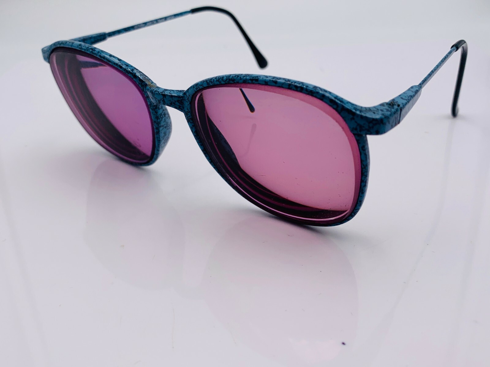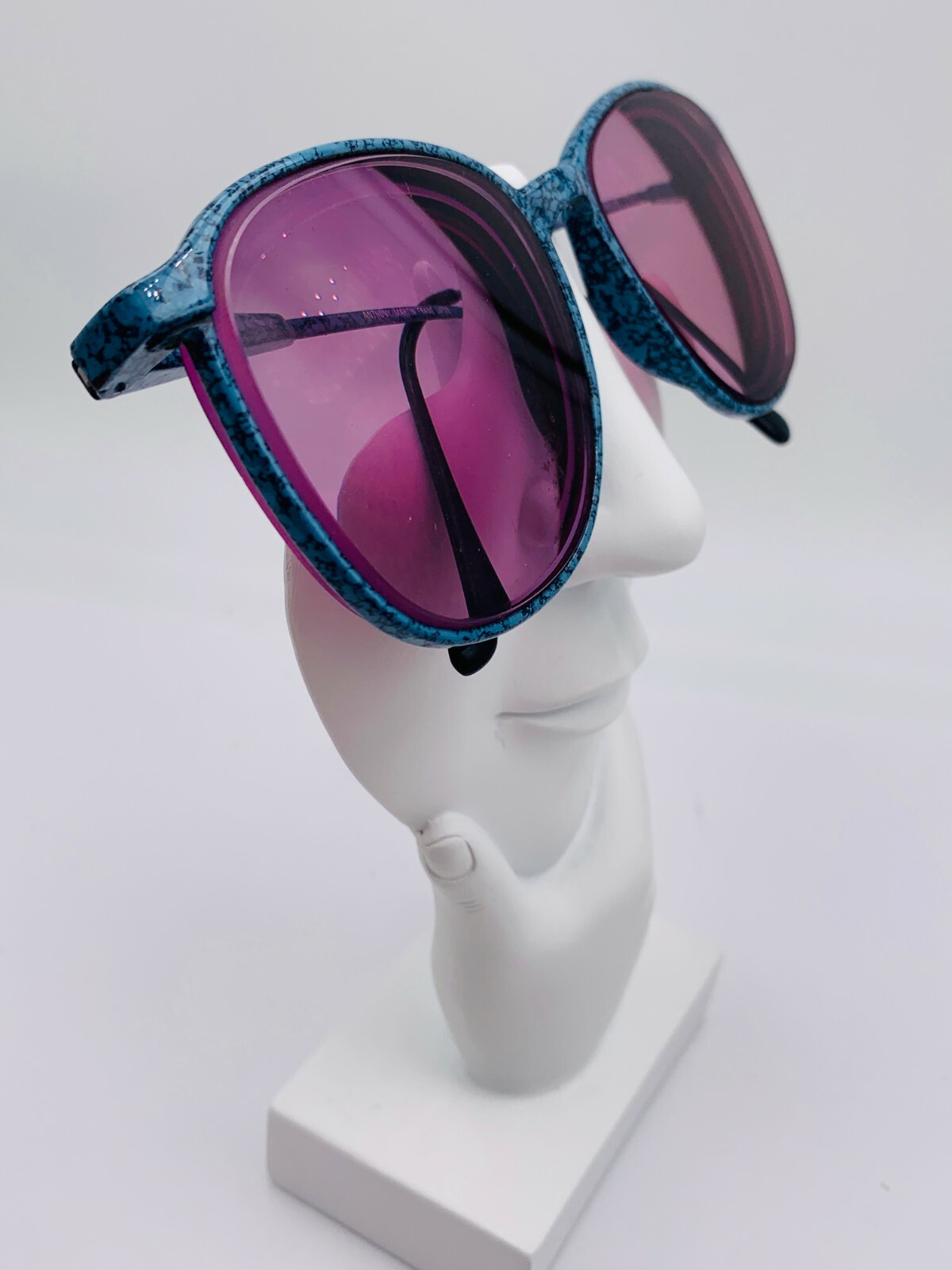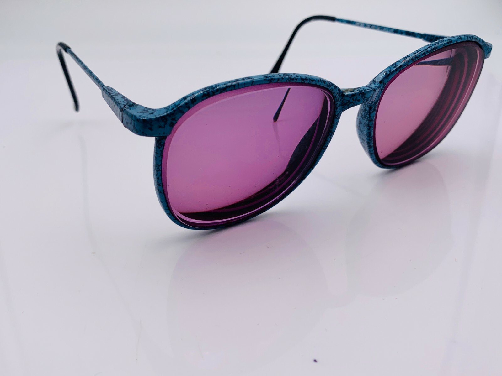 как выглядит Vintage Anthony Martin AM107 Marble Blue Metal Oval Sunglasses Japan FRAMES ONLY фото