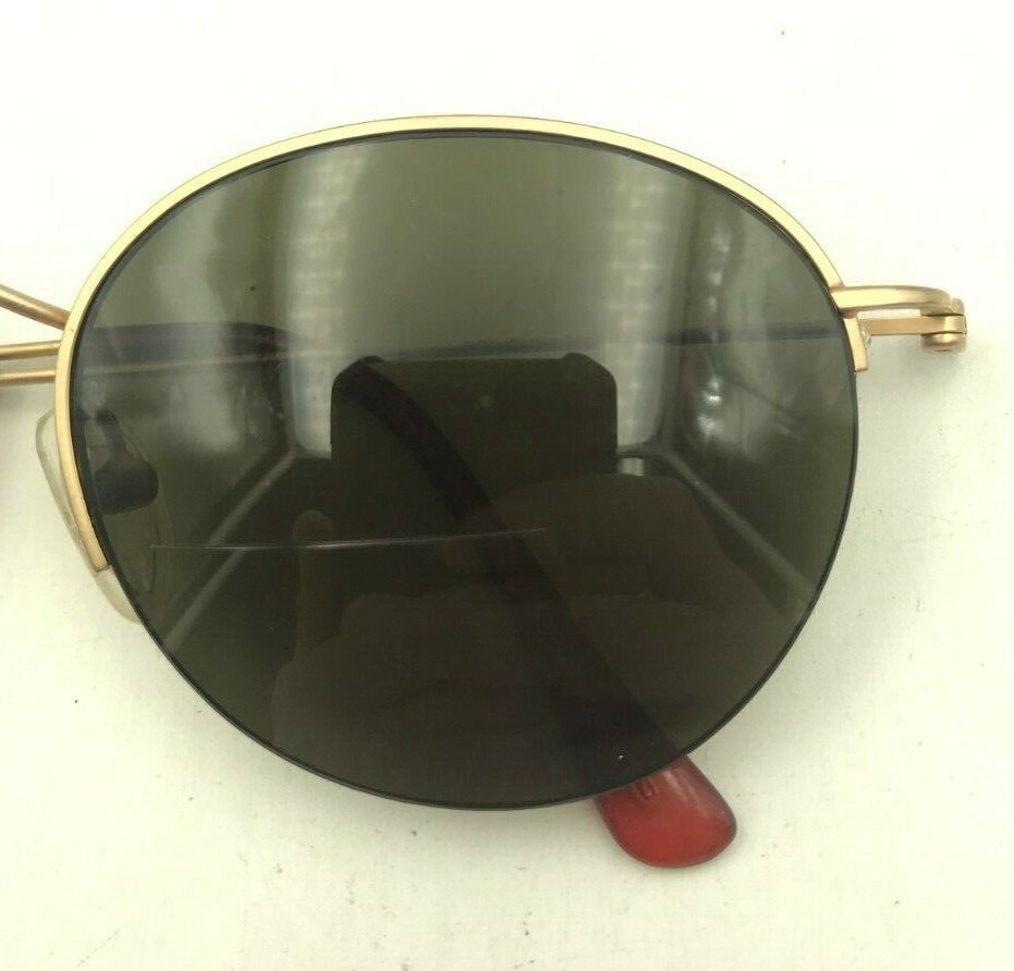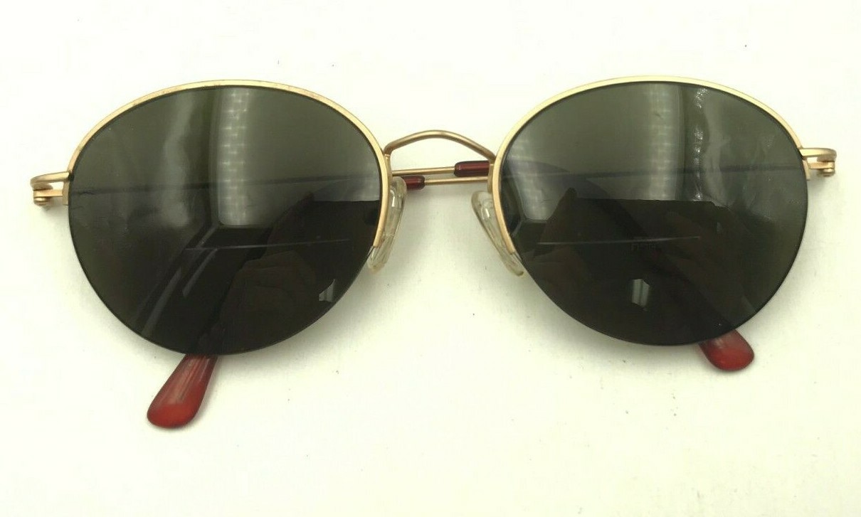 как выглядит Vintage BonJour 73 Gold Metal Oval Half-Rimmed Sunglasses Hong Kong FRAMES ONLY фото