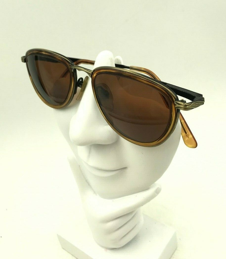как выглядит Vintage BonJour 2-1 Brown Gold Metal Oval Sunglasses Hong Kong FRAMES ONLY фото