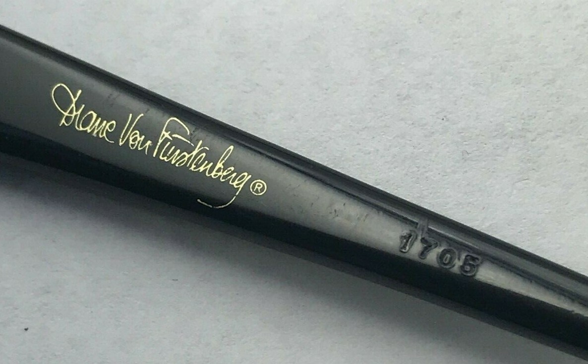 как выглядит Vintage Diane Von Furstenberg 1705 Shiny Black Oval Sunglasses FRAMES ONLY фото