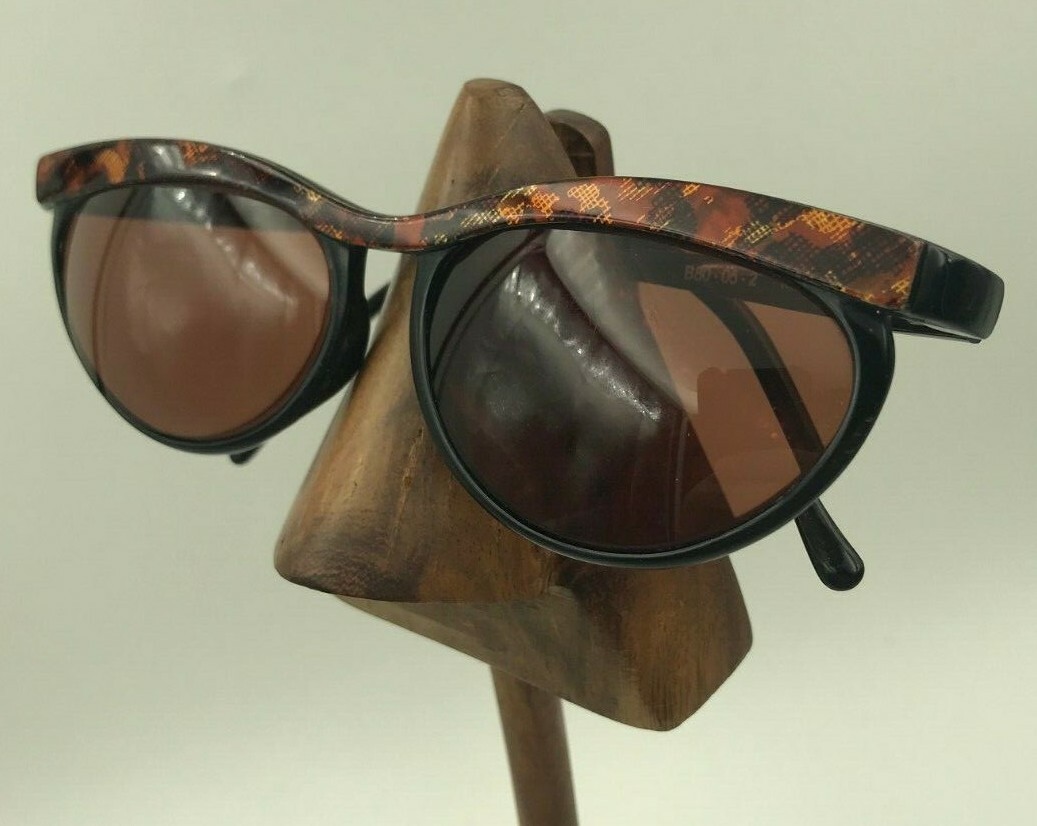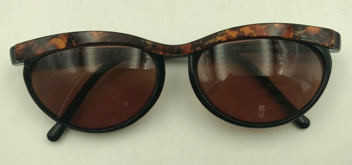Vintage Ellen Tracy B80-05-2 Brown Marble Brow Oval Sunglasses Eyeglasses Italy