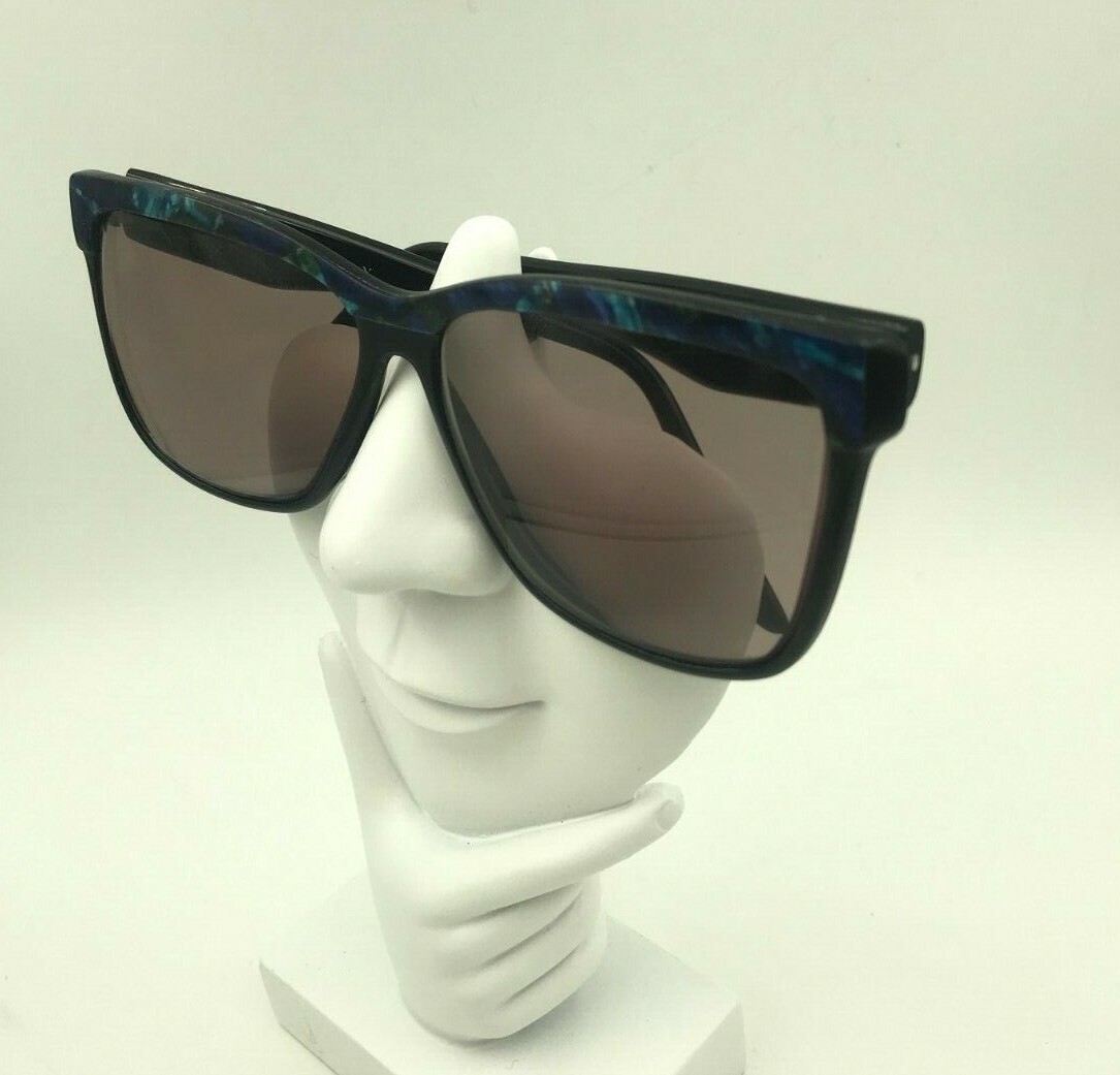 как выглядит Vintage Ellen Tracy B17-93-3 Black Blue Square Cat Eye Sunglasses FRAMES ONLY фото