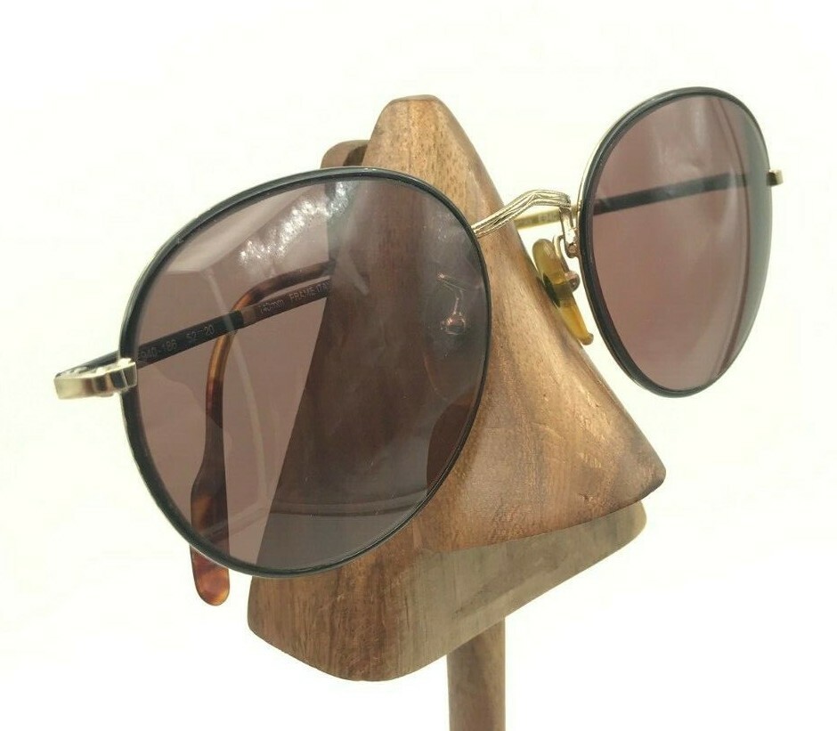 как выглядит Vintage Evan Picone Society Optiks E940 Black Gold Round Sunglasses FRAMES ONLY фото