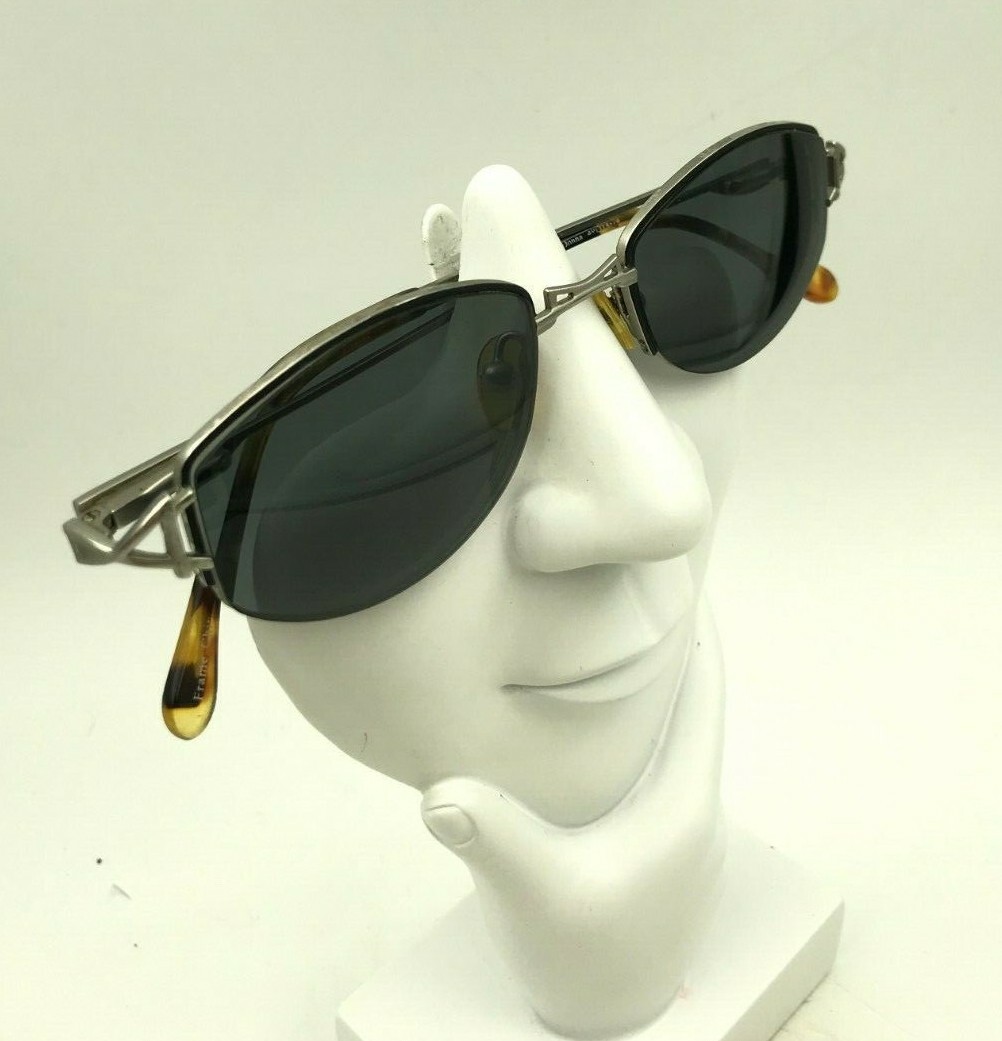 как выглядит Vintage Firenze Black Silver Metal Oval Half-Rimmed Sunglasses FRAMES ONLY фото