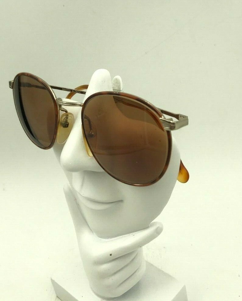как выглядит Vintage Fratelli Lozza Bristol Brown Gold Round Sunglasses Italy FRAMES ONLY фото