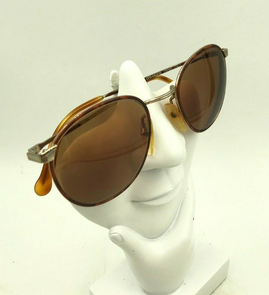 Vintage Fratelli Lozza Bristol Brown Gold Round Sunglasses Italy FRAMES ONLY