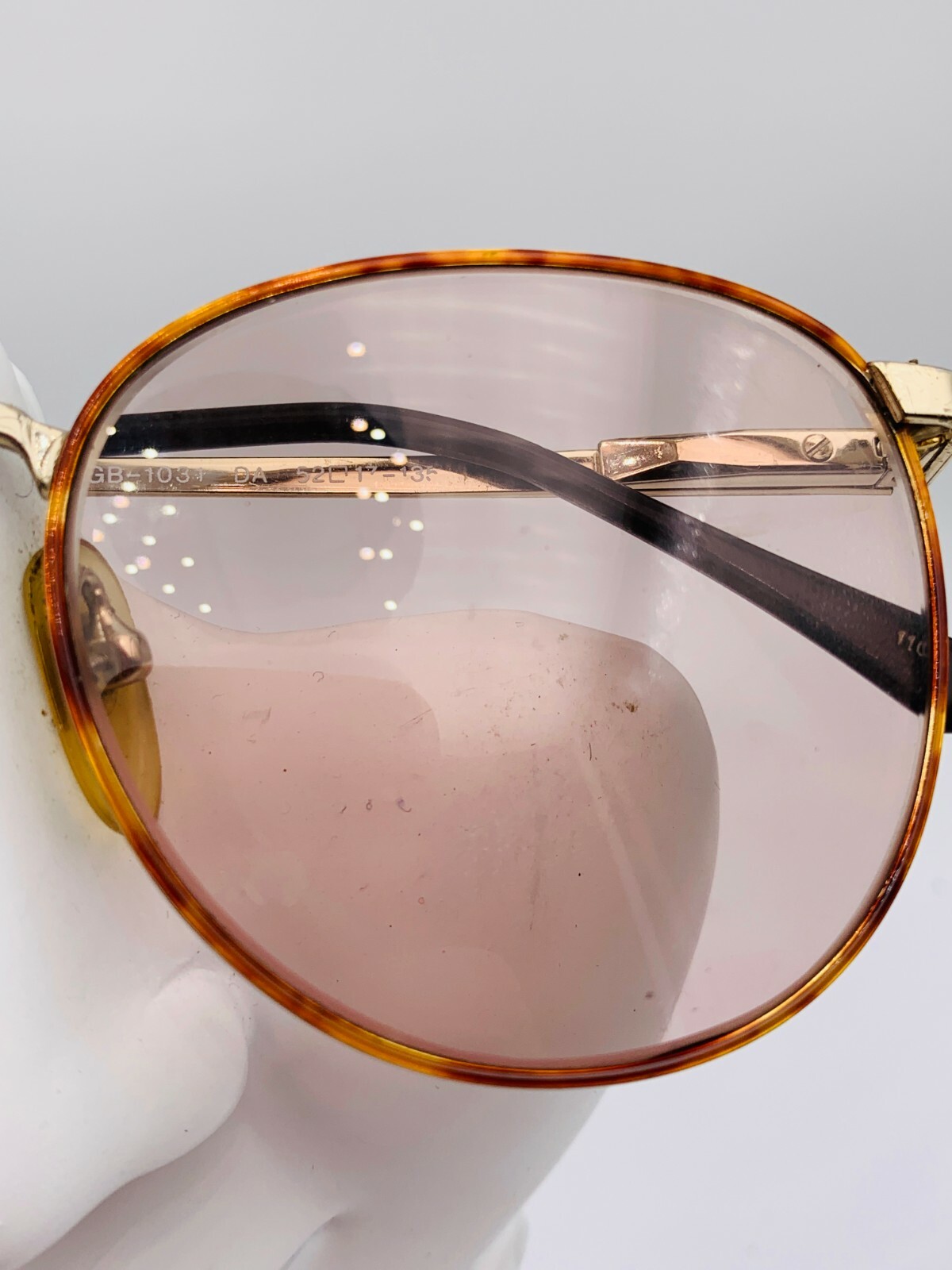 как выглядит Vintage Geoffrey Beene GB-1031 Gold Amber Oval Sunglasses Japan FRAMES ONLY фото