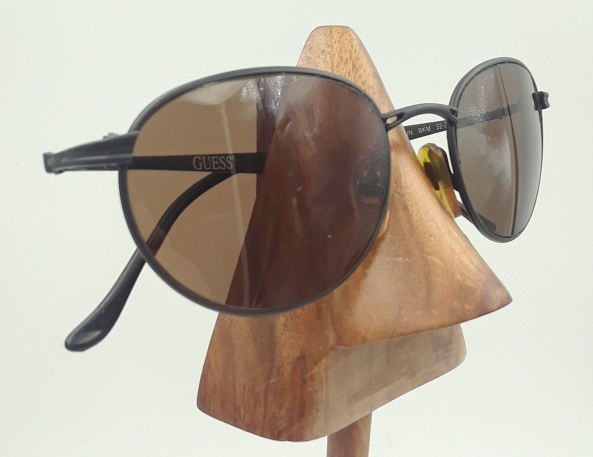 как выглядит Vintage Guess GU932 Sun Bkm Black Metal Oval Round Sunglasses FRAMES ONLY фото