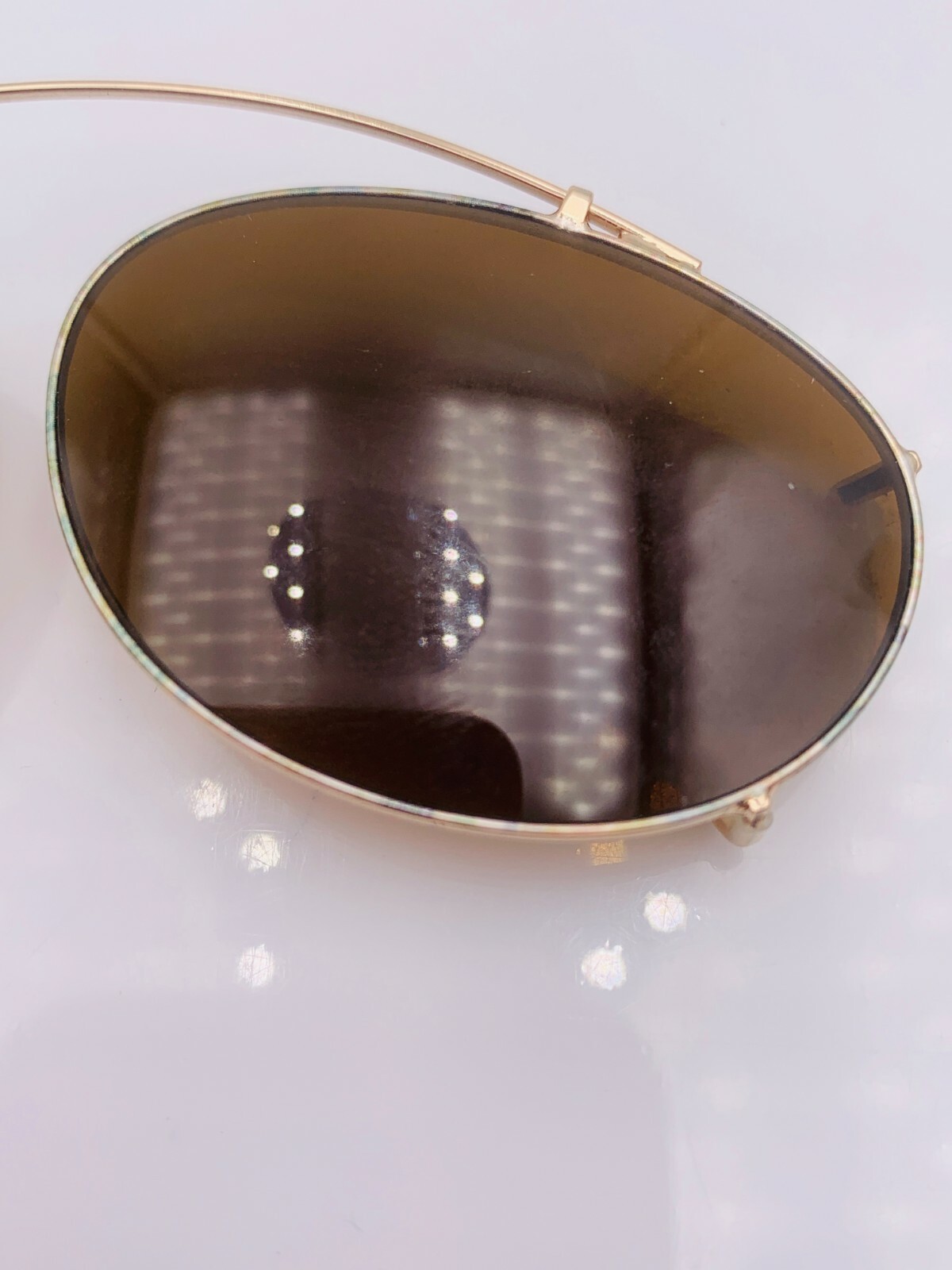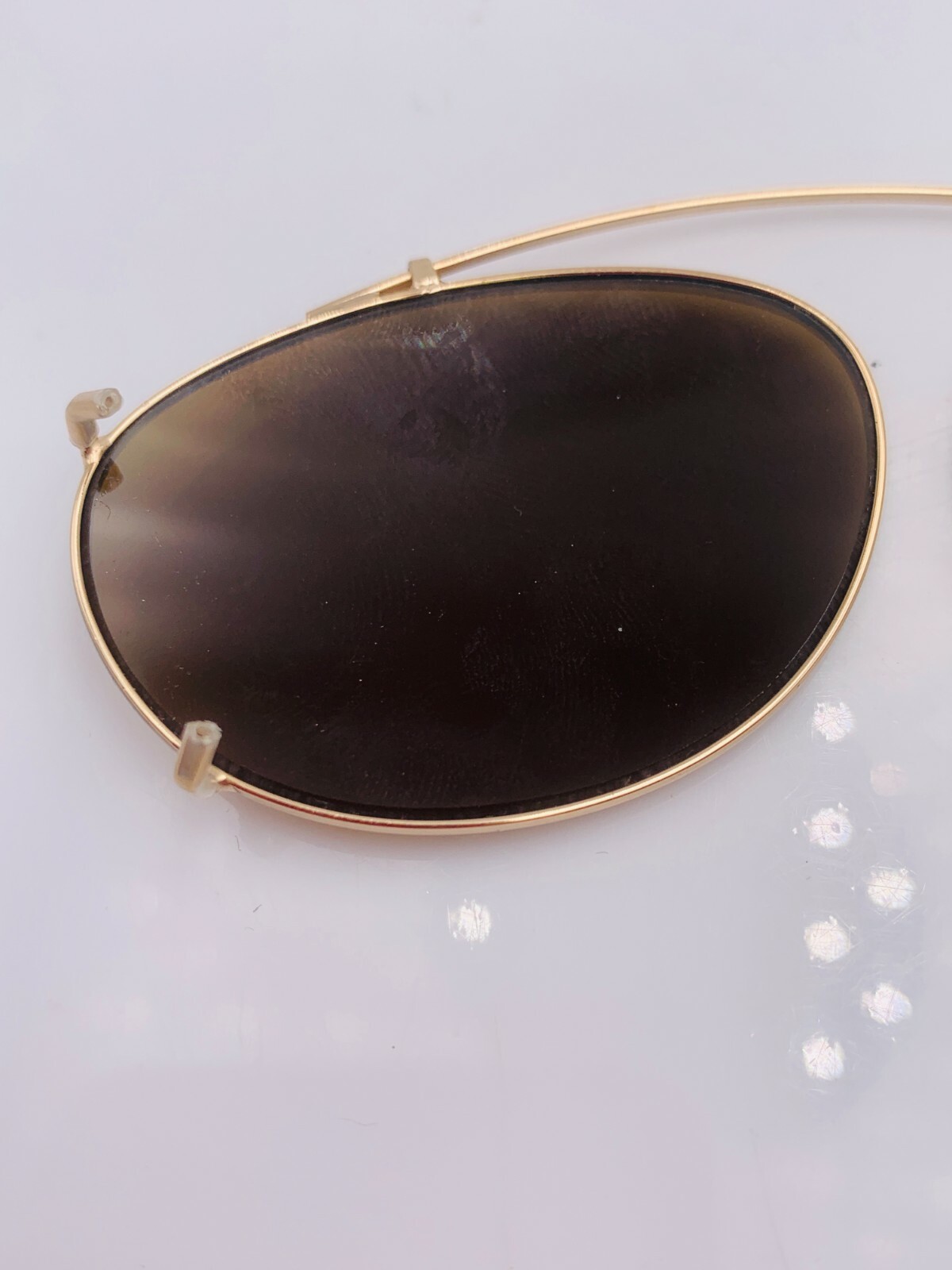 как выглядит Vintage KC W 8AND 600 Gold Metal Oval Oval Clip-On Sunglasses Frames Italy фото