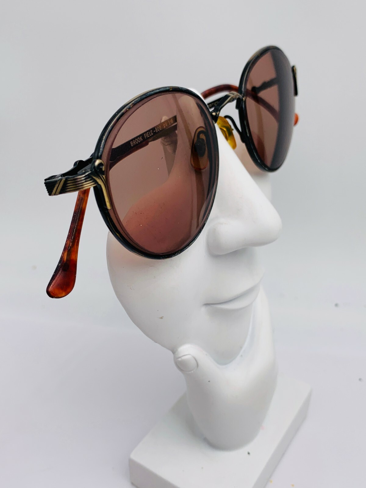 Vintage La Prima Optics Brook-Field Brown Gold Metal Oval Sunglasses FRAMES ONLY