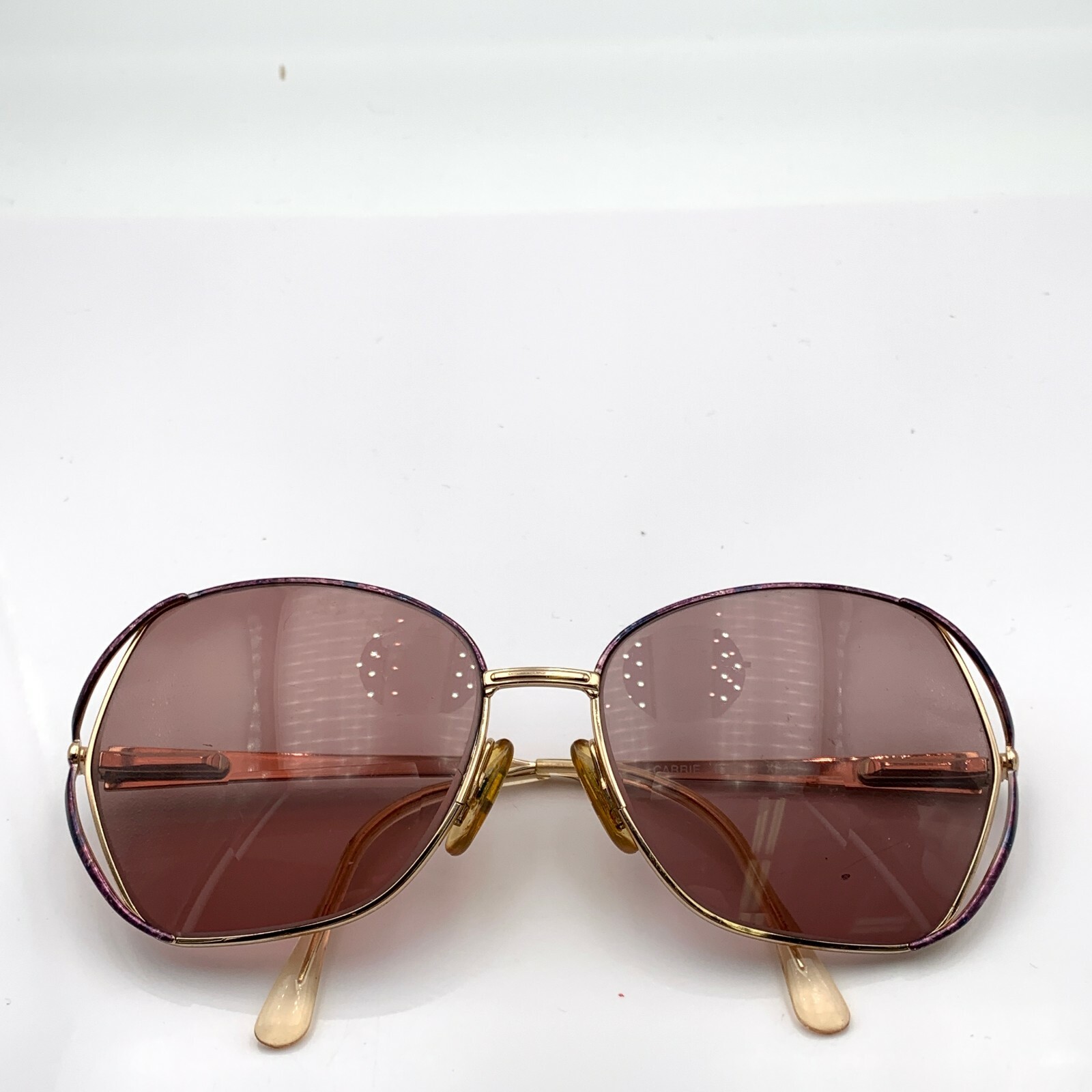 как выглядит Vintage Lamy Carrie Purple Gold Metal Oval Sunglasses FRAMES ONLY фото