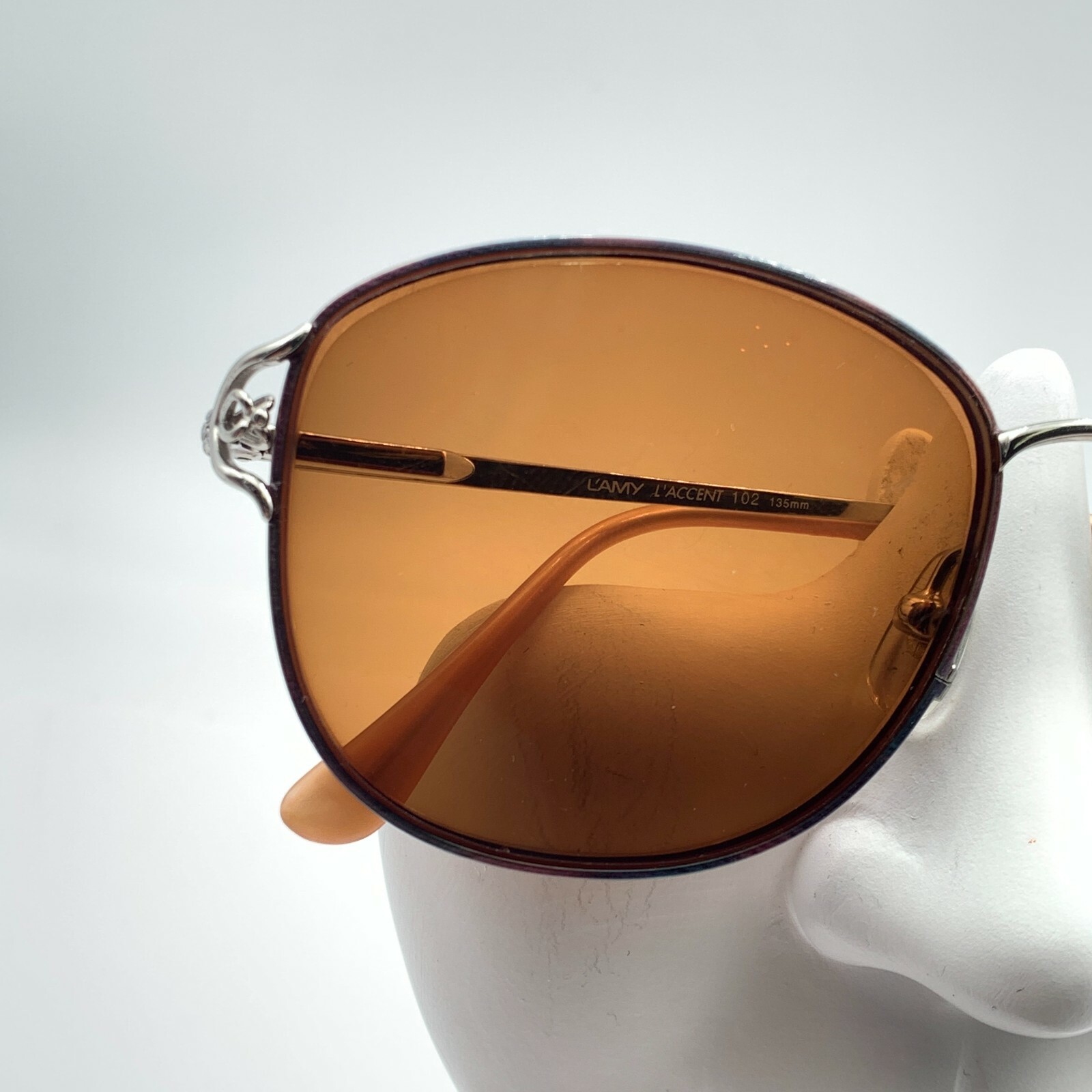как выглядит Vintage Lamy Lacent 102 Blue Pink Silver Oval Sunglasses Japan FRAMES ONLY фото