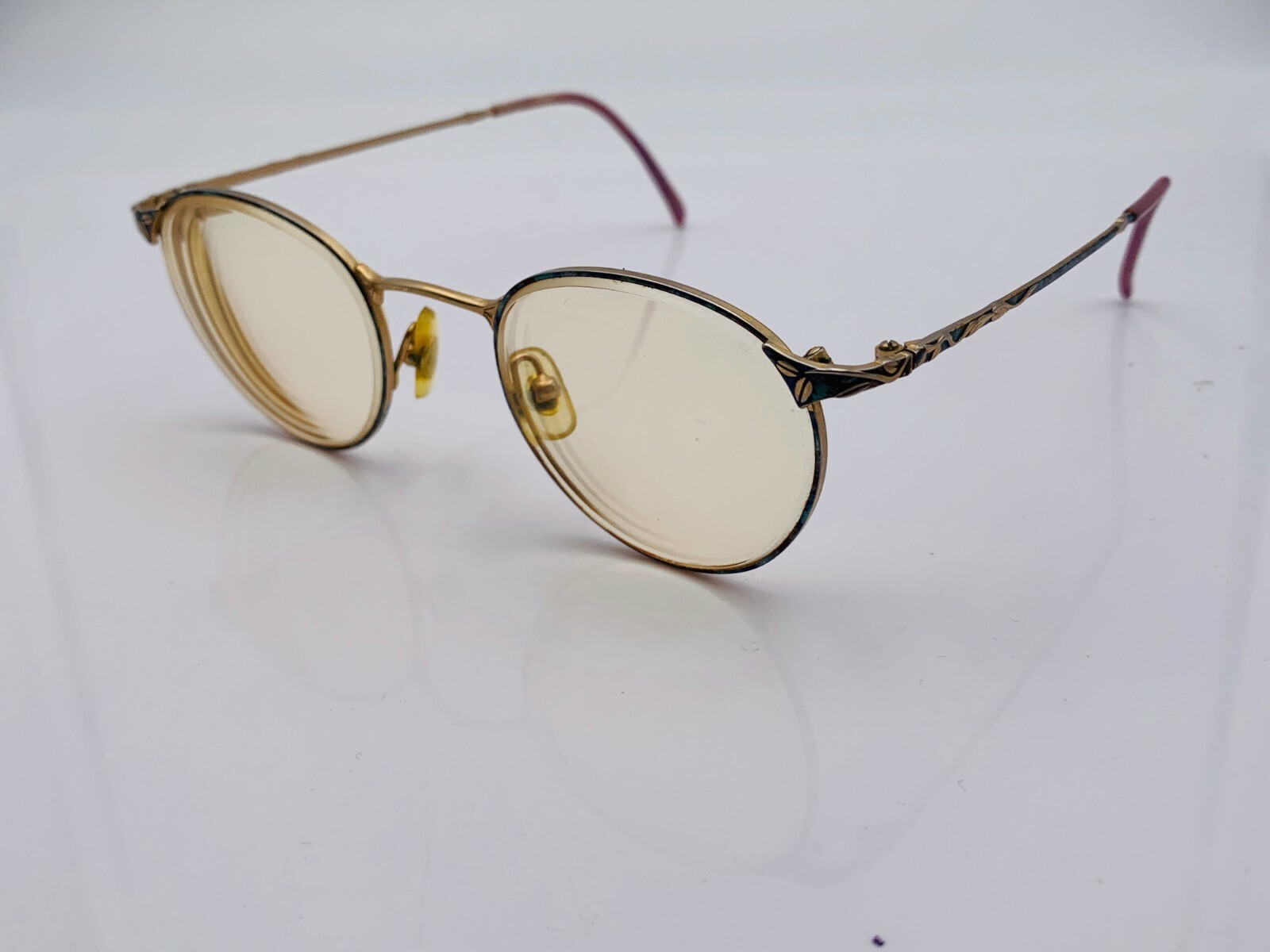 как выглядит Vintage Laura Ashley Gold Multi-Color Metal Oval Sunglasses France FRAMES ONLY фото