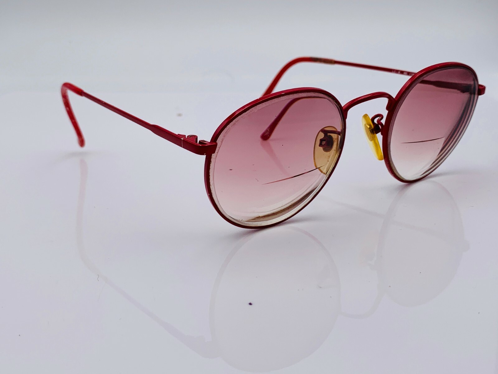 как выглядит Vintage Liz Claiborne LC-8 Red Metal Oval Sunglasses FRAMES ONLY фото