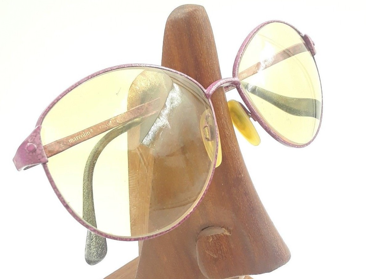 как выглядит Vintage Marcolin 7502 755 Pink Marbled Metal Round Sunglasses FRAMES ONLY фото