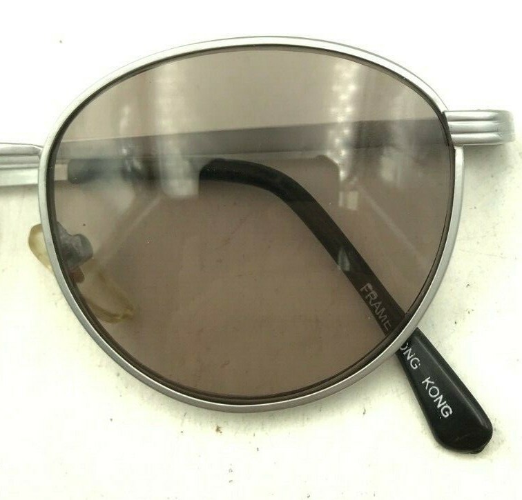 Vintage Matte Silver Metal Oval Sunglasses Hong Kong FRAMES ONLY