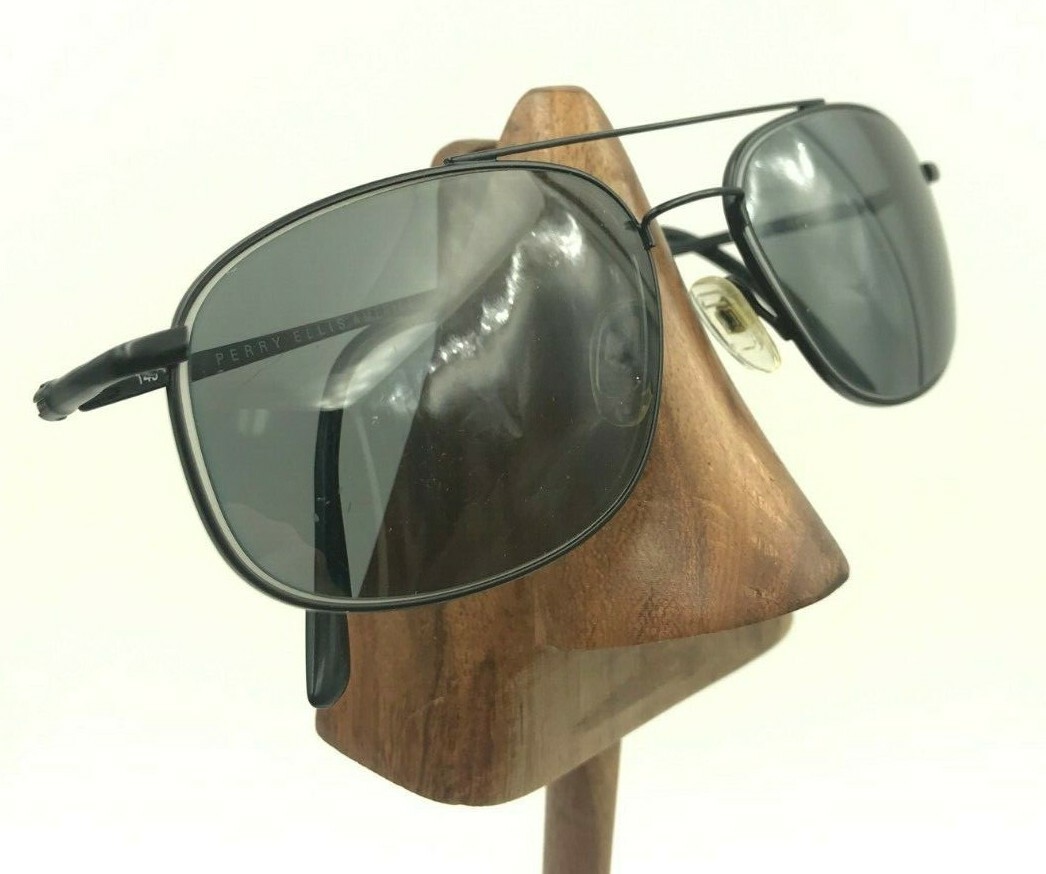 как выглядит Vintage Perry Ellis PEA010-3 Black Metal Oval Pilot Sunglasses FRAMES ONLY фото