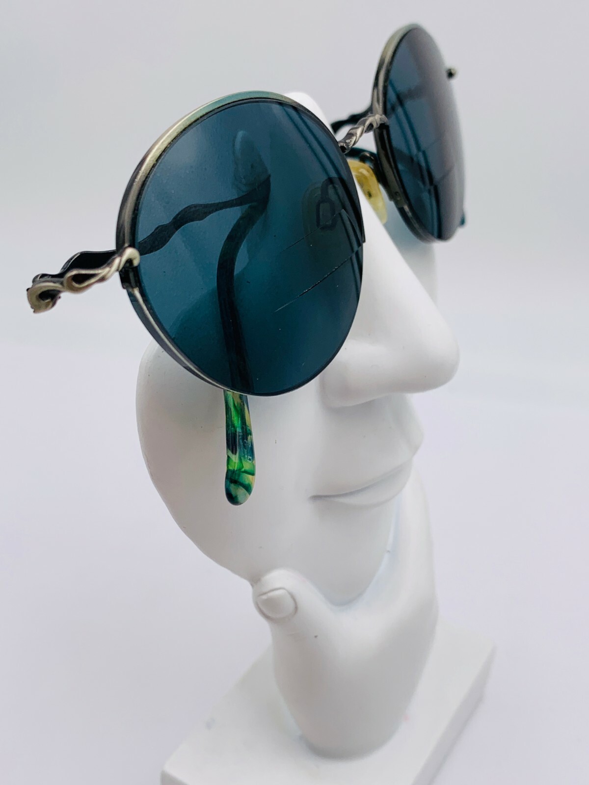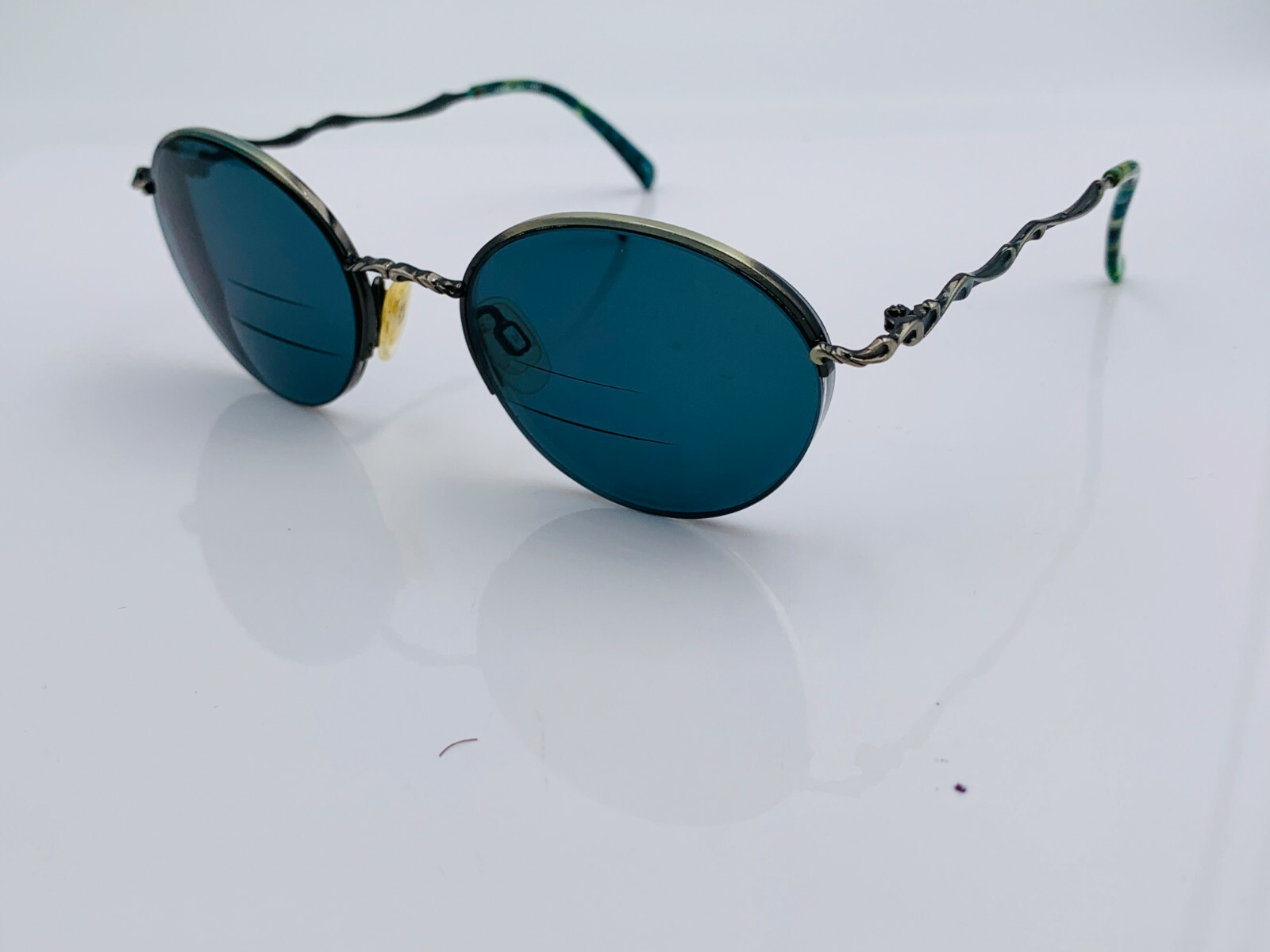 как выглядит Vintage Tura 643 Green Gray Metal Oval Half-Rimmed Sunglasses Japan FRAMES ONLY фото