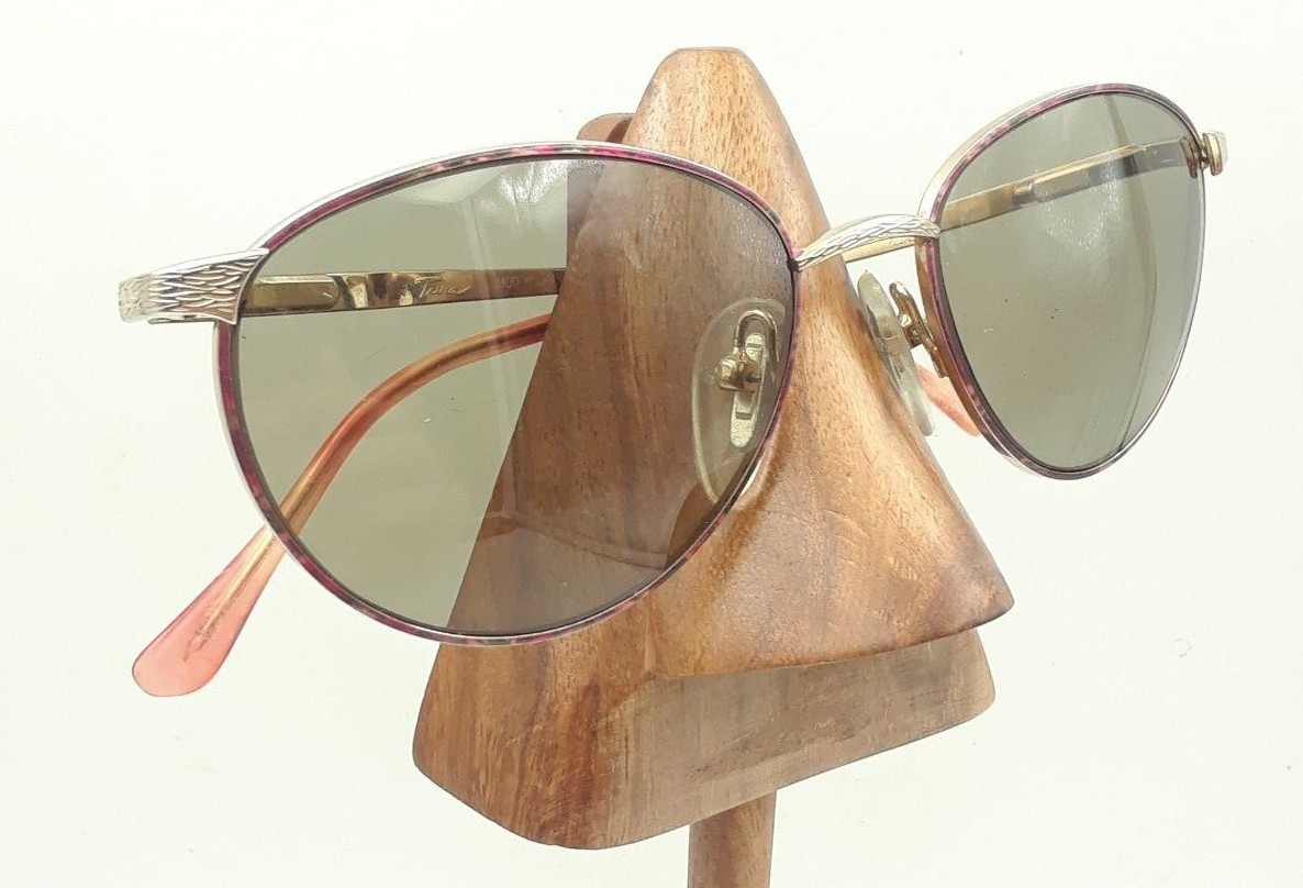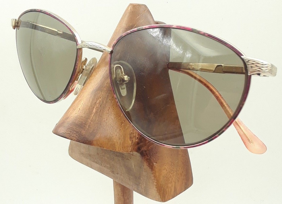 как выглядит Vintage Tura 767 Gold Red Pink Marble Metal Oval Sunglasses FRAMES ONLY фото